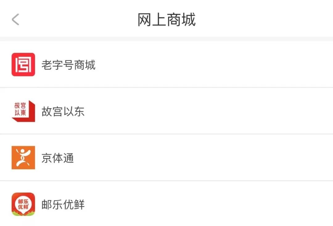 商务服务方面,开发上线了“网上商城”模块,包括“老字号商城”“故宫以东”“京体通”“邮乐优鲜”,打通了东城区老字号、东城文旅、东城体育场馆及公园、中国邮政等消费、预约等渠道。