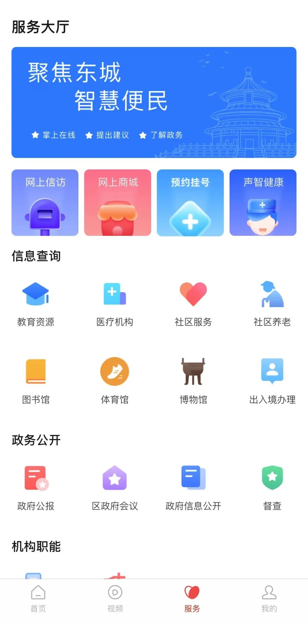 政务服务方面,“北京东城”App接入了“东城区政务服务中心”平台、“网上信访”平台、“市民随手拍”平台,开发了“东城区机构职能”版块,为市民提供了便捷的线上问政渠道。