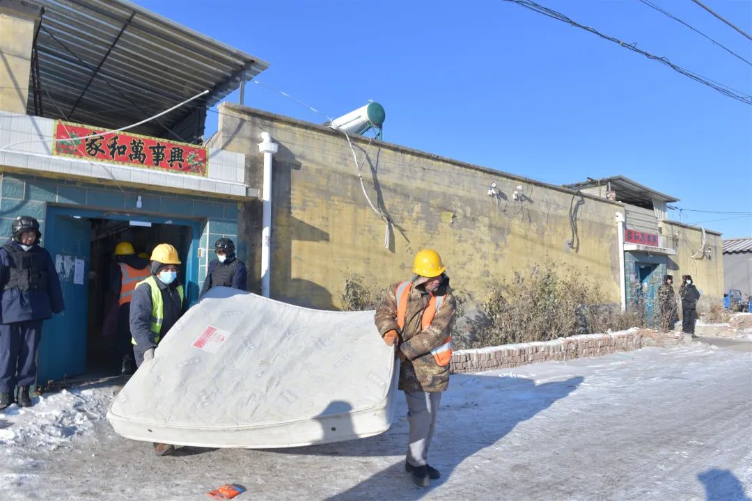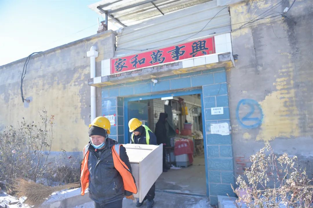 为确保本次拆除工作平稳有序,镇城乡建设办公室(村镇建设工作组)组织人员力量在违法建设建筑内开展物品清点、搬运工作,并同步将违法建设进行断水、断电。