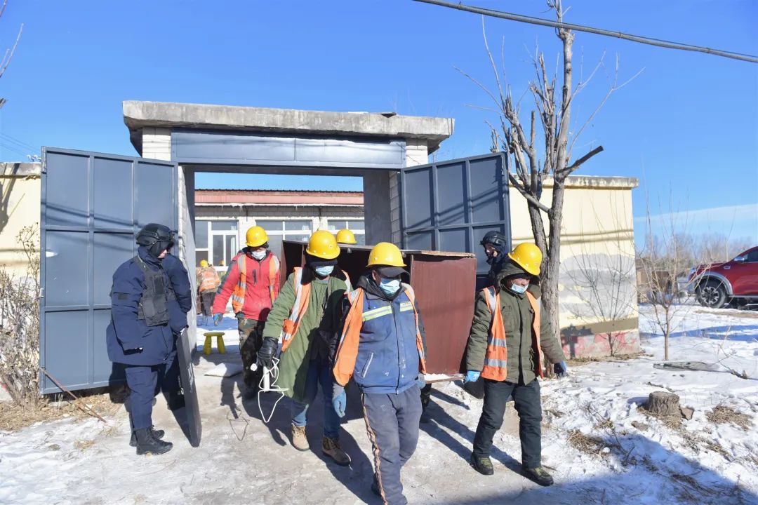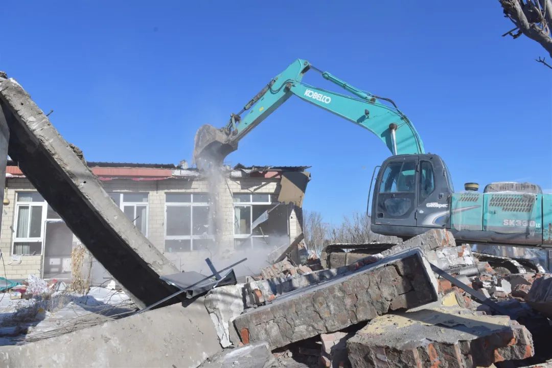 拆除过程中,两台大型挖掘设备同步施工,高效开展拆除作业。现场秩序控制组、人员安置组、后勤保障组等服务保障力量人员就位,确保拆除作业高效开展,拆除过程平稳有序。