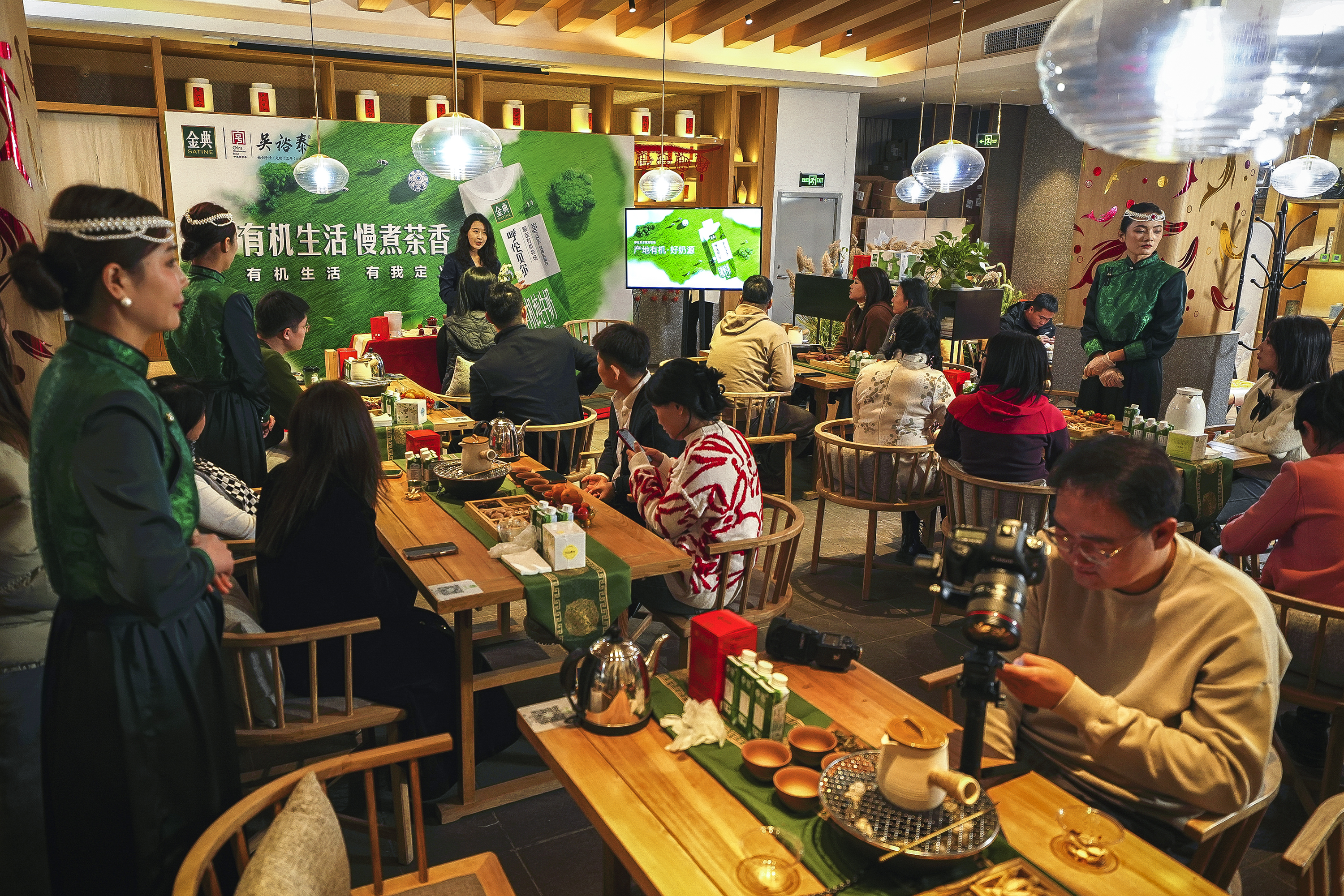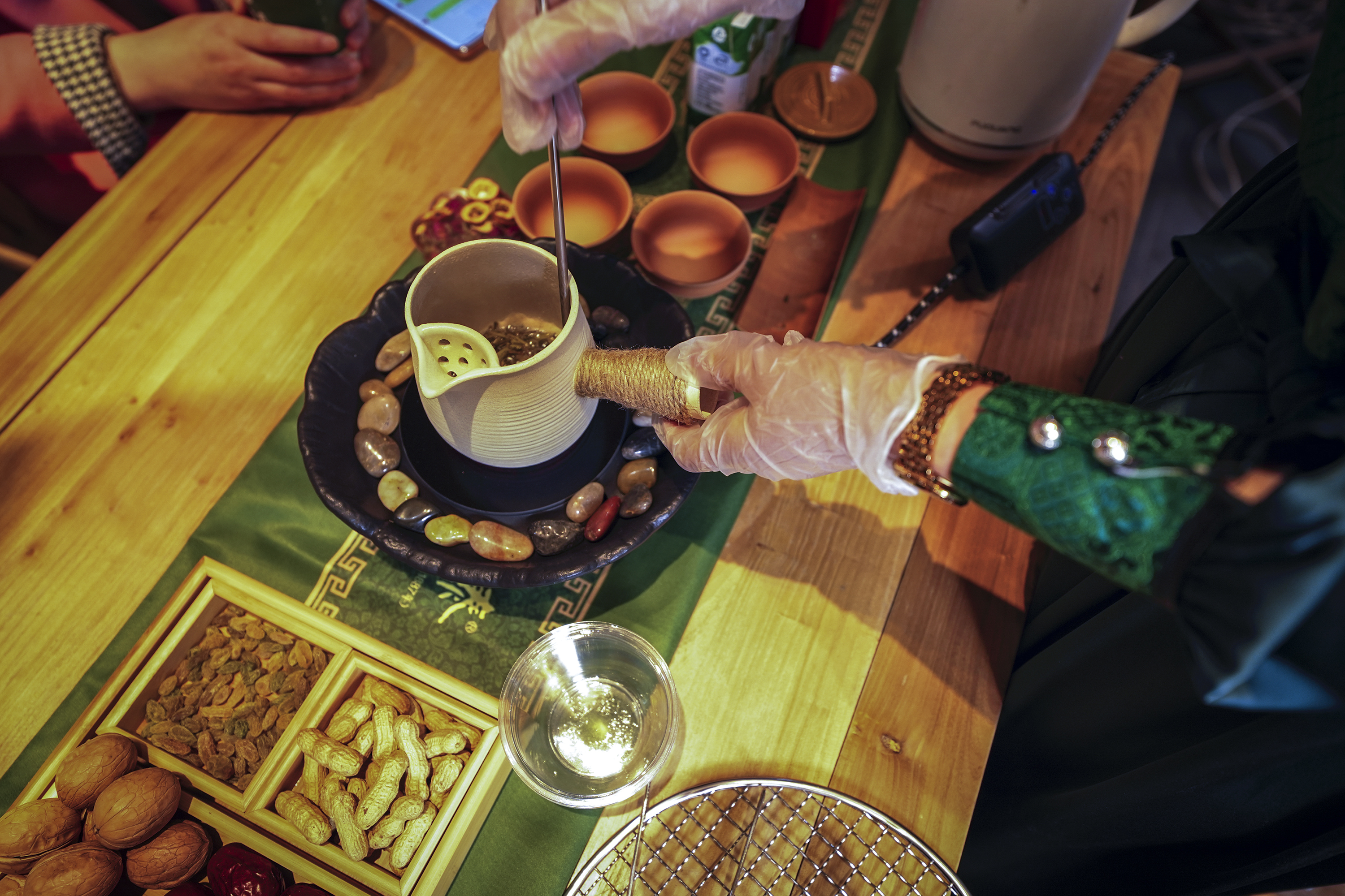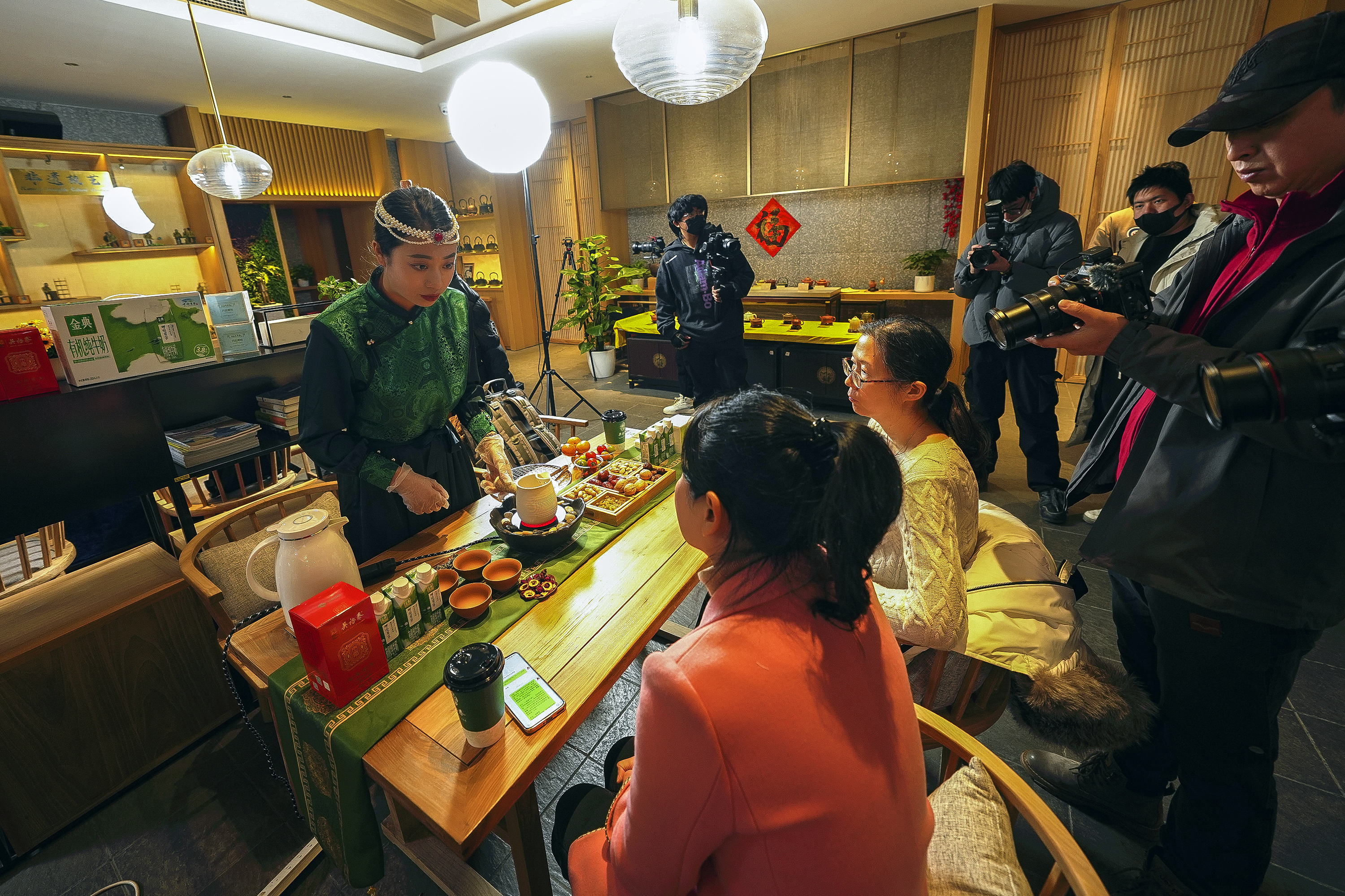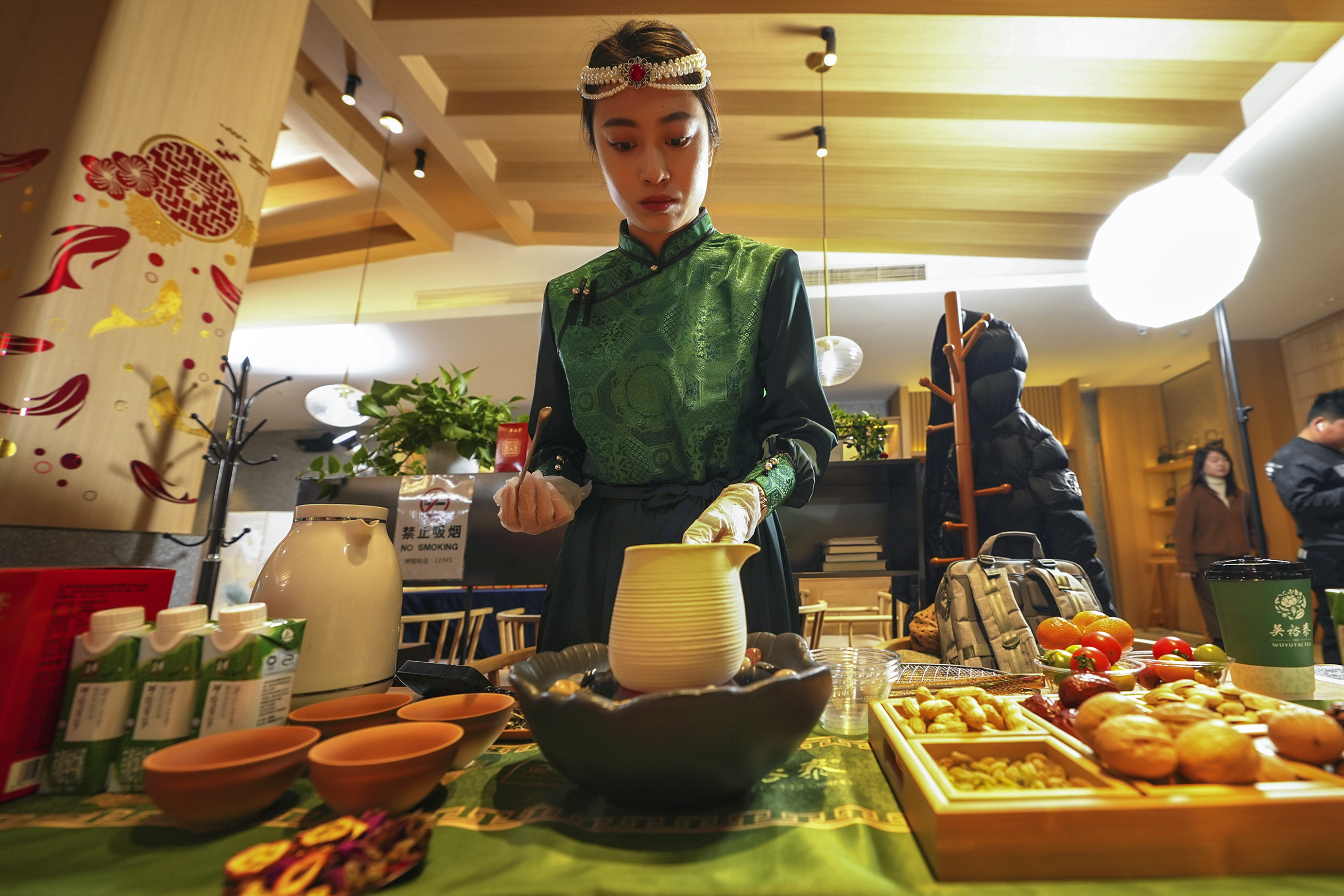 日前,一场别开生面的“围炉煮茶”沙龙在吴裕泰茶庄王府井旗舰店的二楼茶馆开展。伴随着悠扬的马头琴声和优美的茶艺表演,游客们在这里体验传统茶叶的煮制过程,感受茶香弥漫的仪式感。
