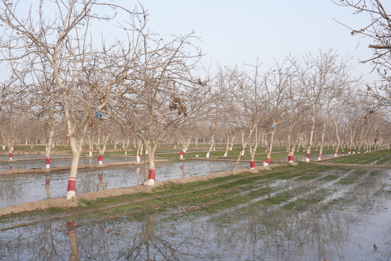 和田市玉龙喀什镇阿亚克米克拉村已灌溉完的田间。(阿卜力克木·依卜拉依木摄)