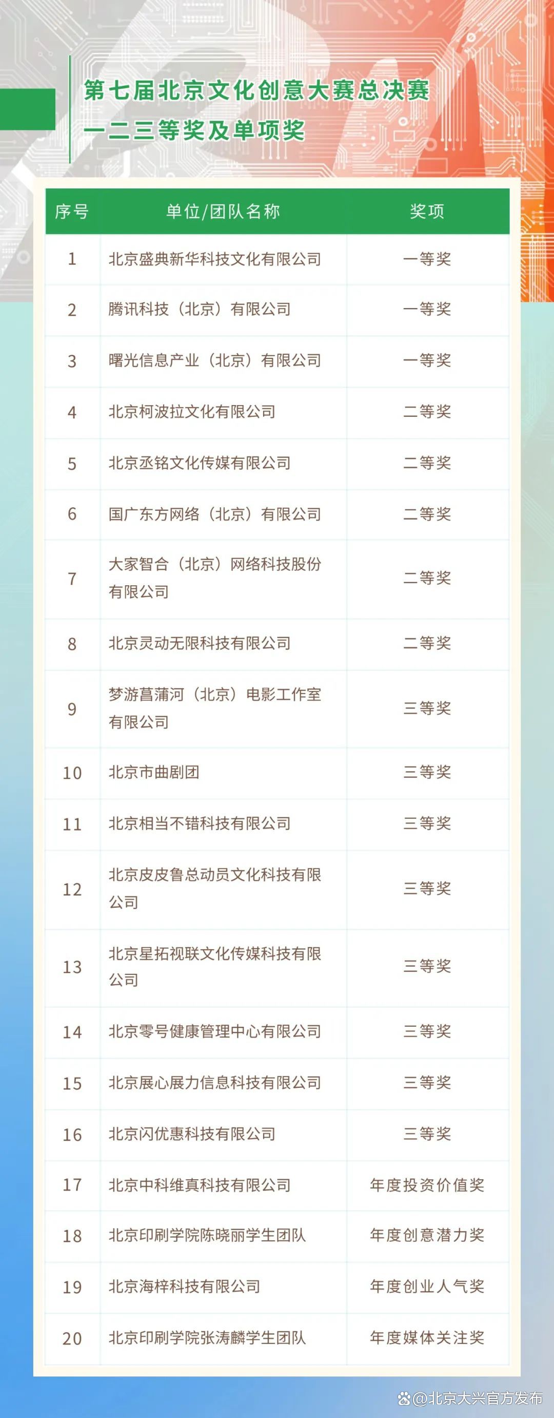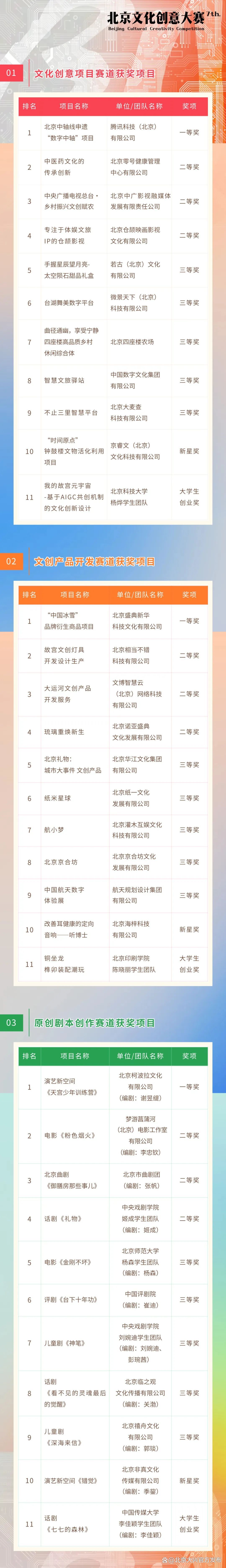 现对第七届北京文化创意大赛获奖项目进行公示。
