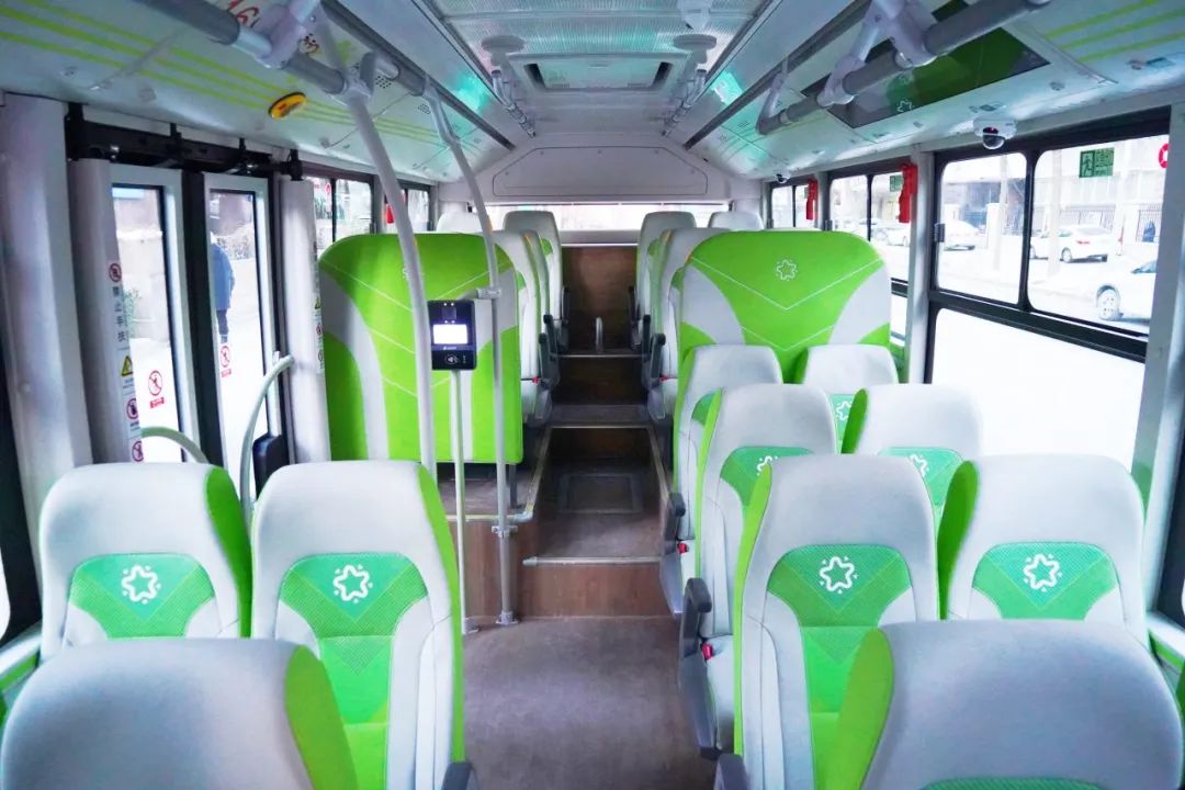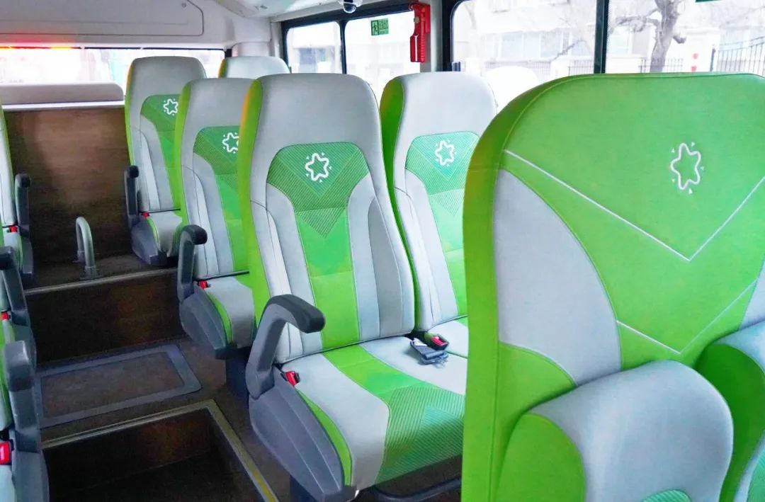 通学车特有的“春辰绿”配色辨识度高,车厢内部座椅采取双排布设的软包座椅,并配备“一人一座一带(安全带)”,全方位保障孩子们乘车的舒适度及安全性,提升乘车体验。