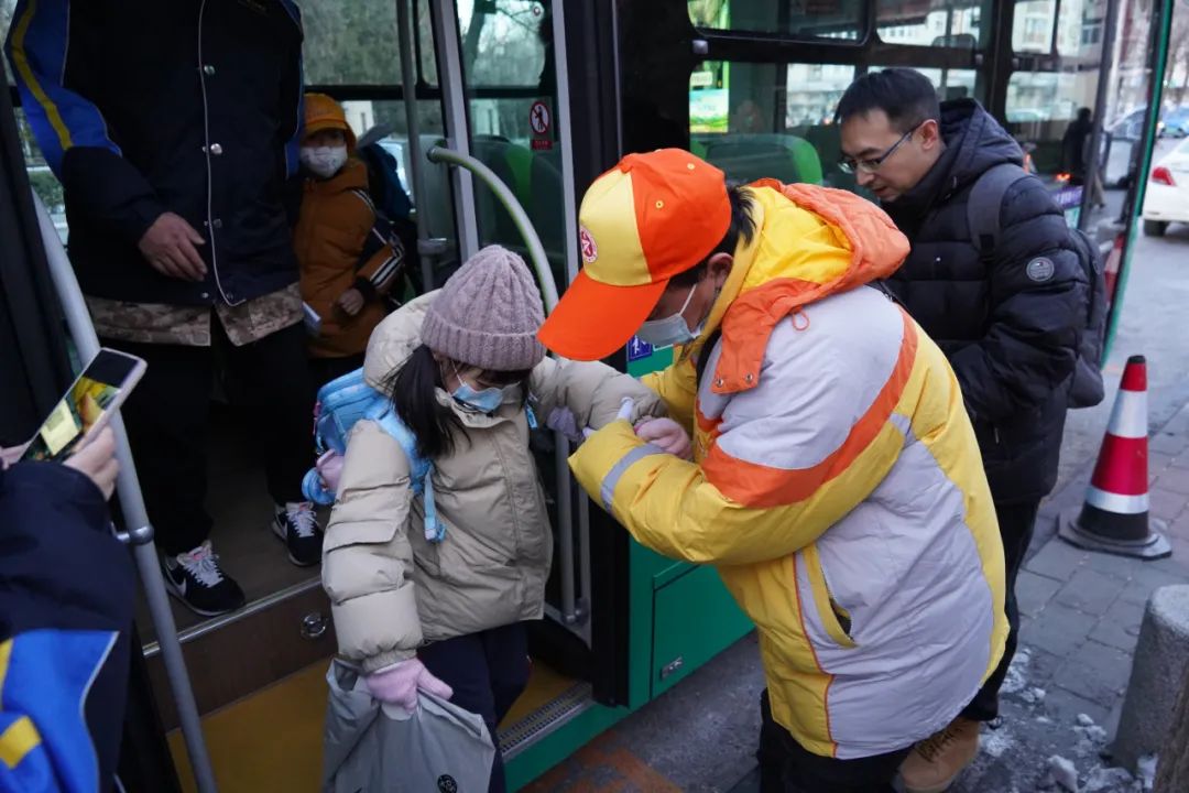 早晨7点30分左右的秀园站点,两辆崭新的通学车停靠在路旁,等候着乘车学生陆续到来。工作人员完成信息登记后,孩子们有序上车入座。约15分钟时间,通学车便一站直达学校。