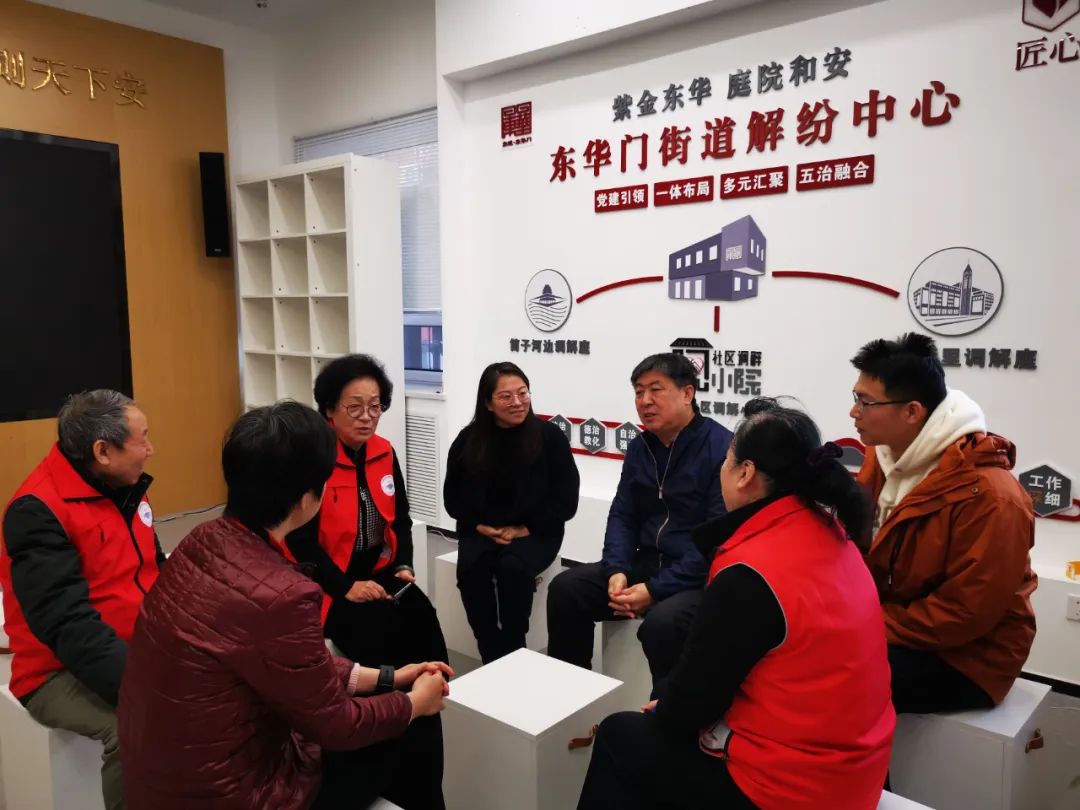 在不断推进党建工作与调解工作相互融合的实践探索中,东华门街道逐步形成了以街工委、社区党委、网格党支部、院落党小组、党员“五级联动”基层党组织为引领,以街道解纷中心为中枢、社区调解小院和网格矛调小组上下联动的层级解纷机制。