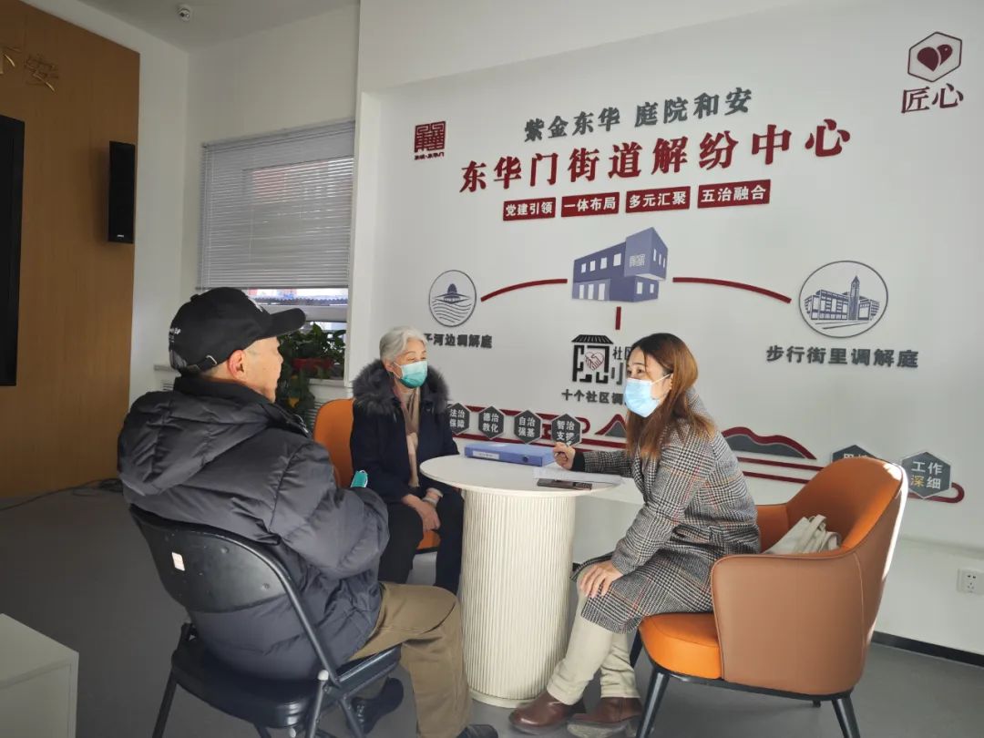 东华门街道解纷中心位于东城区东厂北巷甲4号,是东华门街道积极打造的集人民调解、行政调解、司法调解为一体的多元调解中心,自实体化运行至今,已排查、化解各类纠纷342件,调解成功率达99%,切实将矛盾纠纷化解在“第一道防线”,让群众遇到困难能够第一时间寻求解决渠道,成为街道级人民调解工作的新阵地。