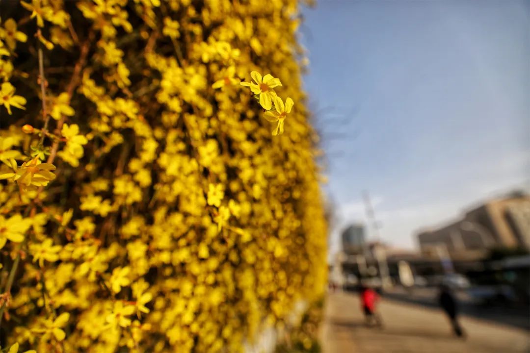 簇簇迎春花连绵绽放