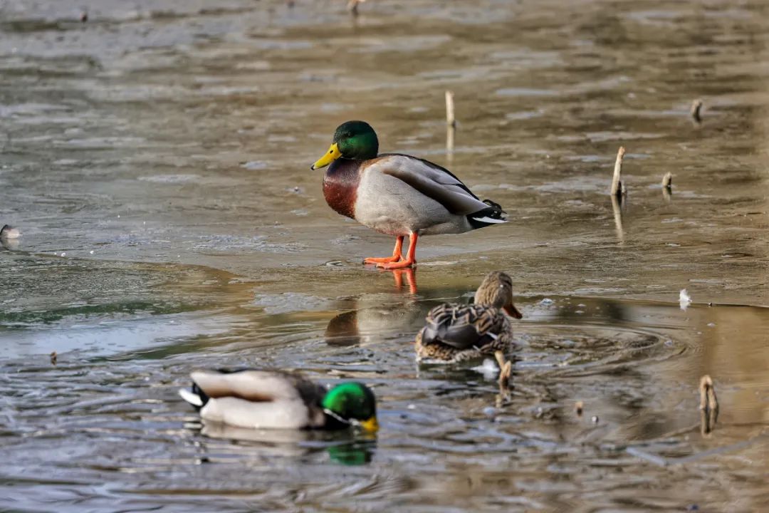 迎春花开,鸭子凫水