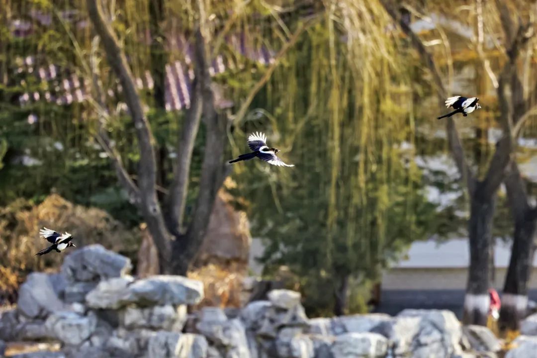 喜鹊振翅,银鸥翱翔
