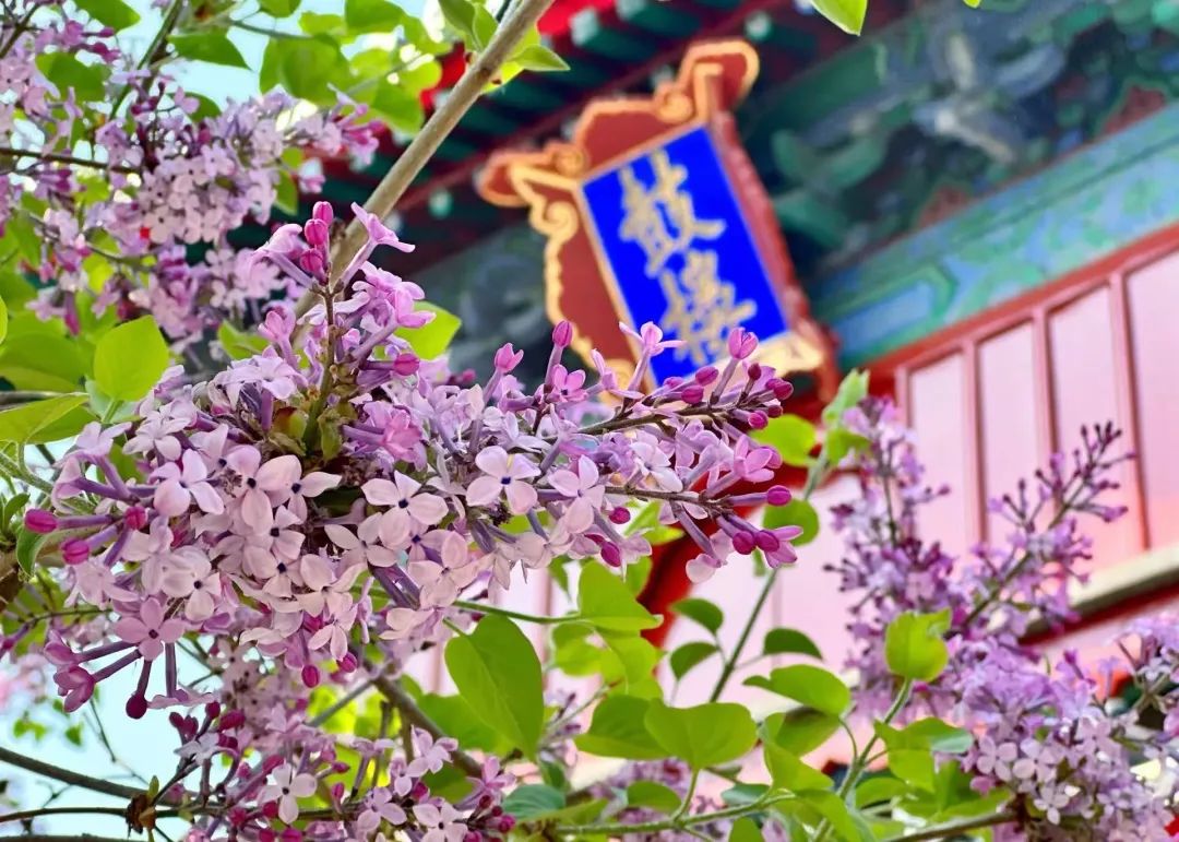 其间点缀紫色的丁香
