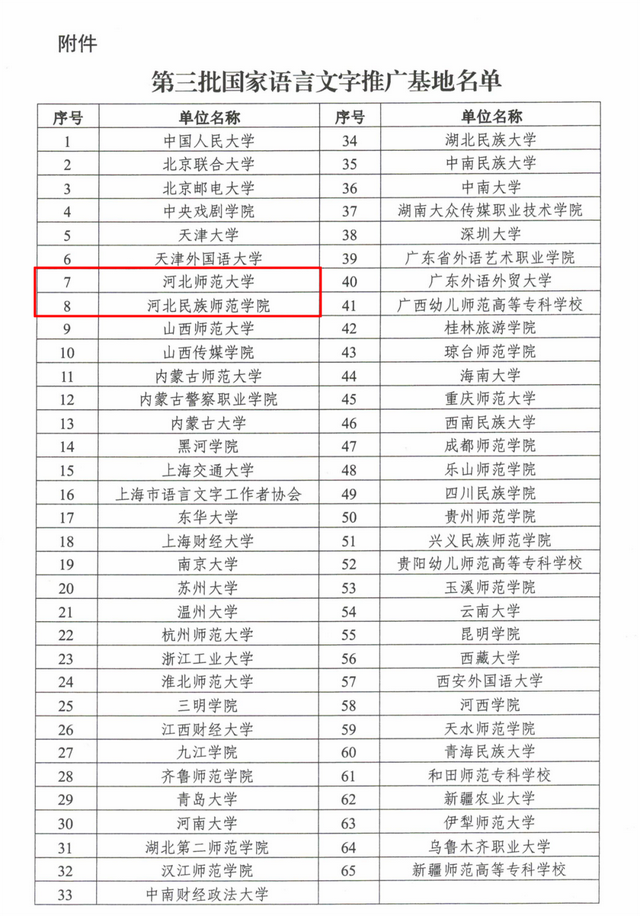 国家语言文字推广基地是新时代教育和语言文字事业高质量发展的重要支撑。我省高度重视推荐申报工作,按照教育部要求,认真组织申报,严格审核把关,确保申报质量。经专家评审、实地考察、综合评议、网上公示等程序,教育部、国家语委认定65家单位为第三批国家语言文字推广基地,其中我省获批2家,全省国家语言文字推广基地达到7家。
