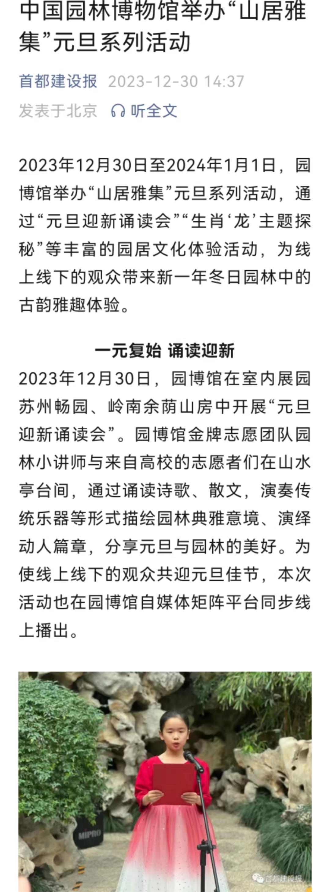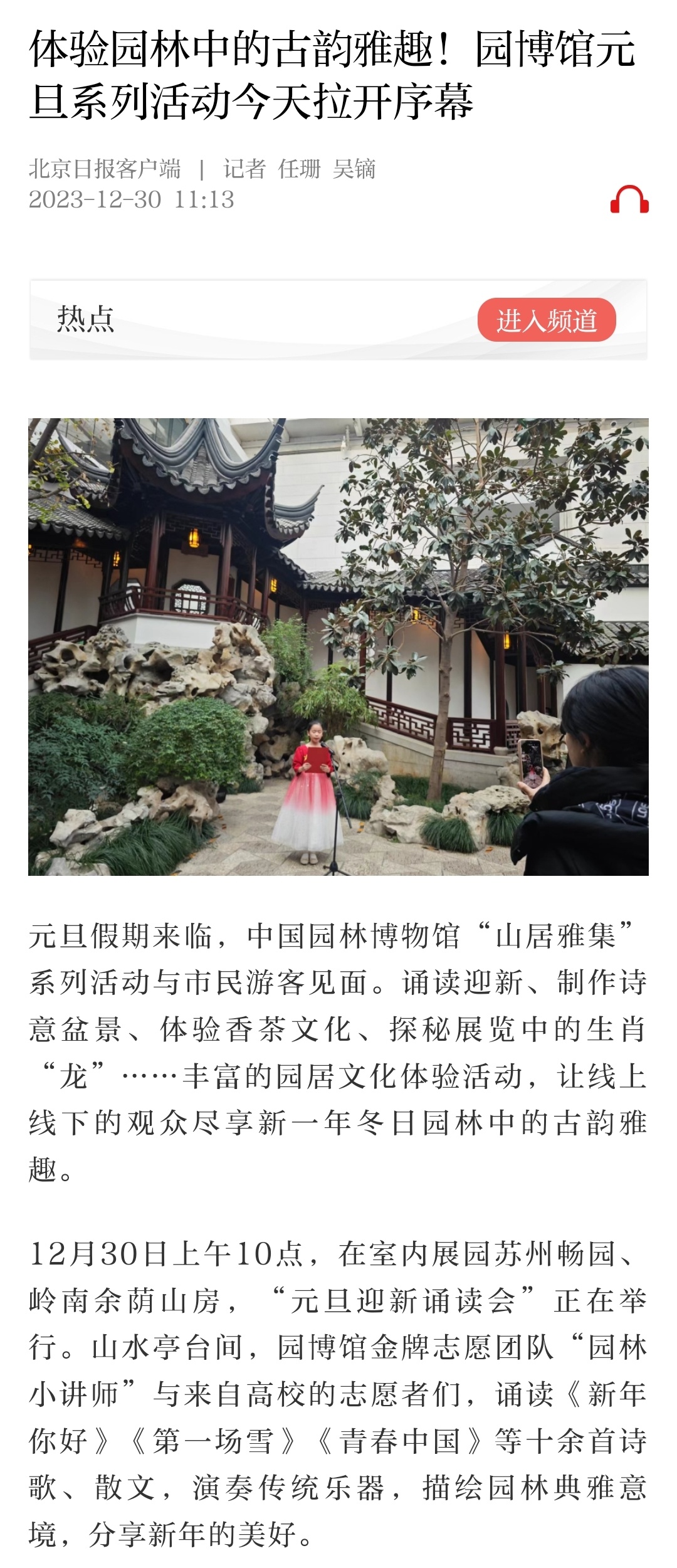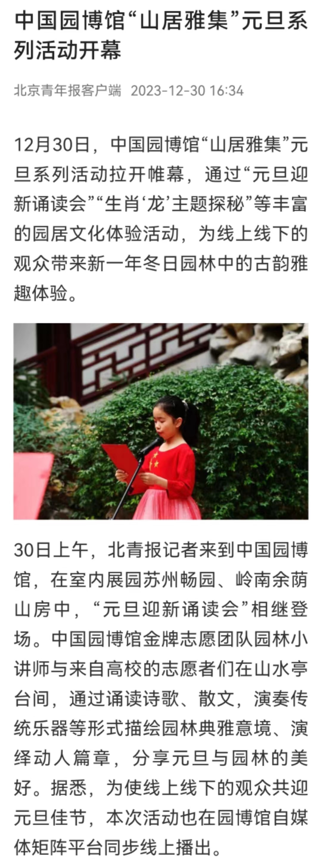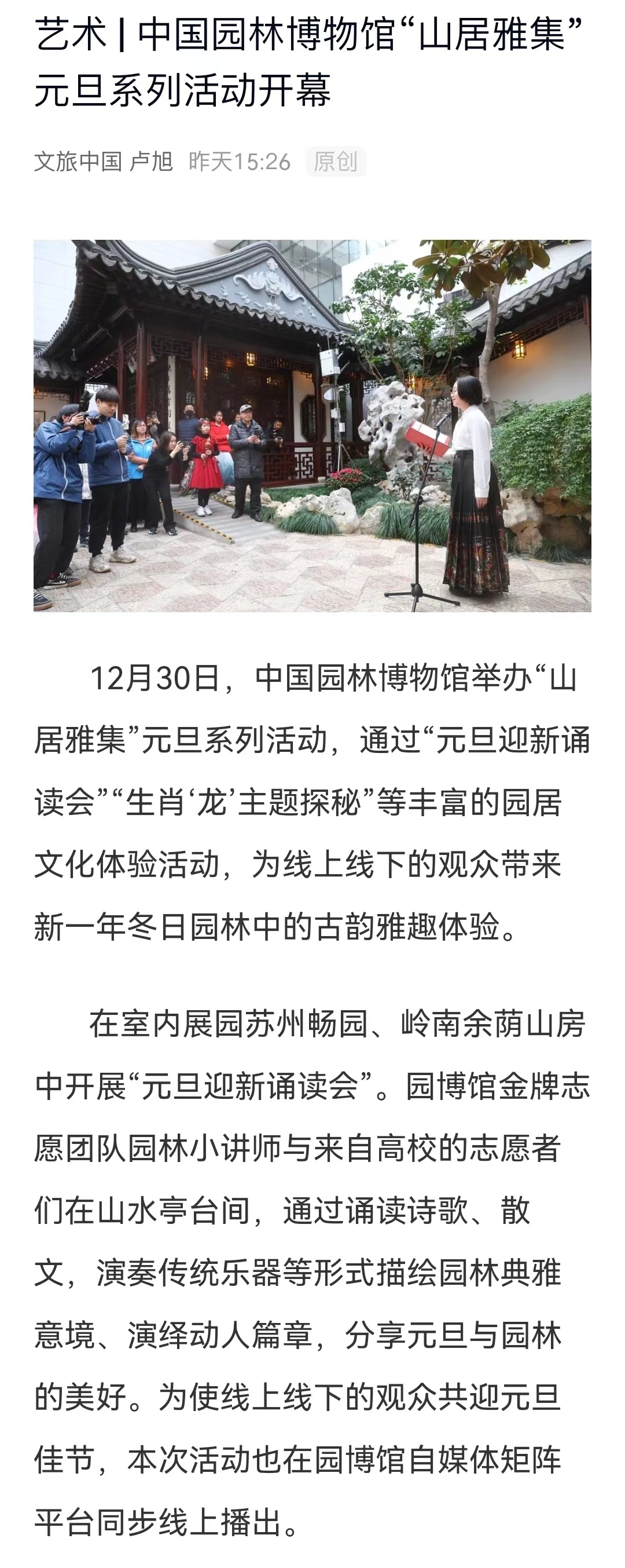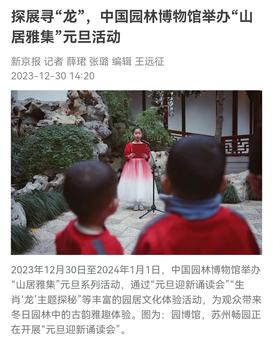 △ 不同镜头视角,为你记录诵读迎新的精彩,分享元旦与园林的美好(部分媒体报道)