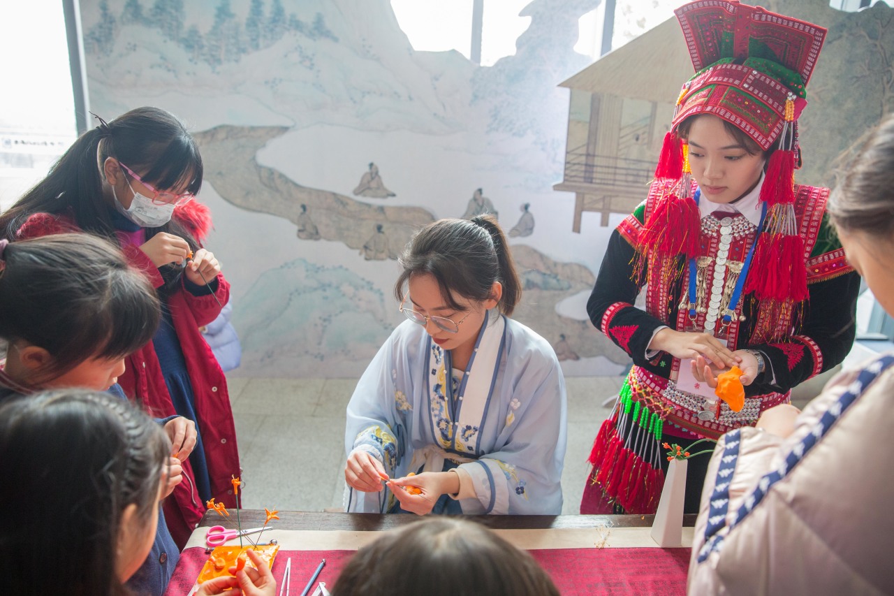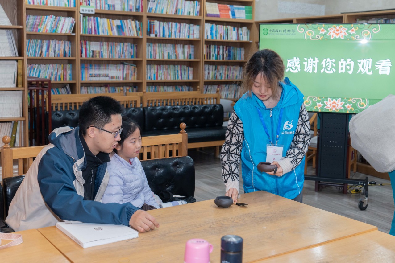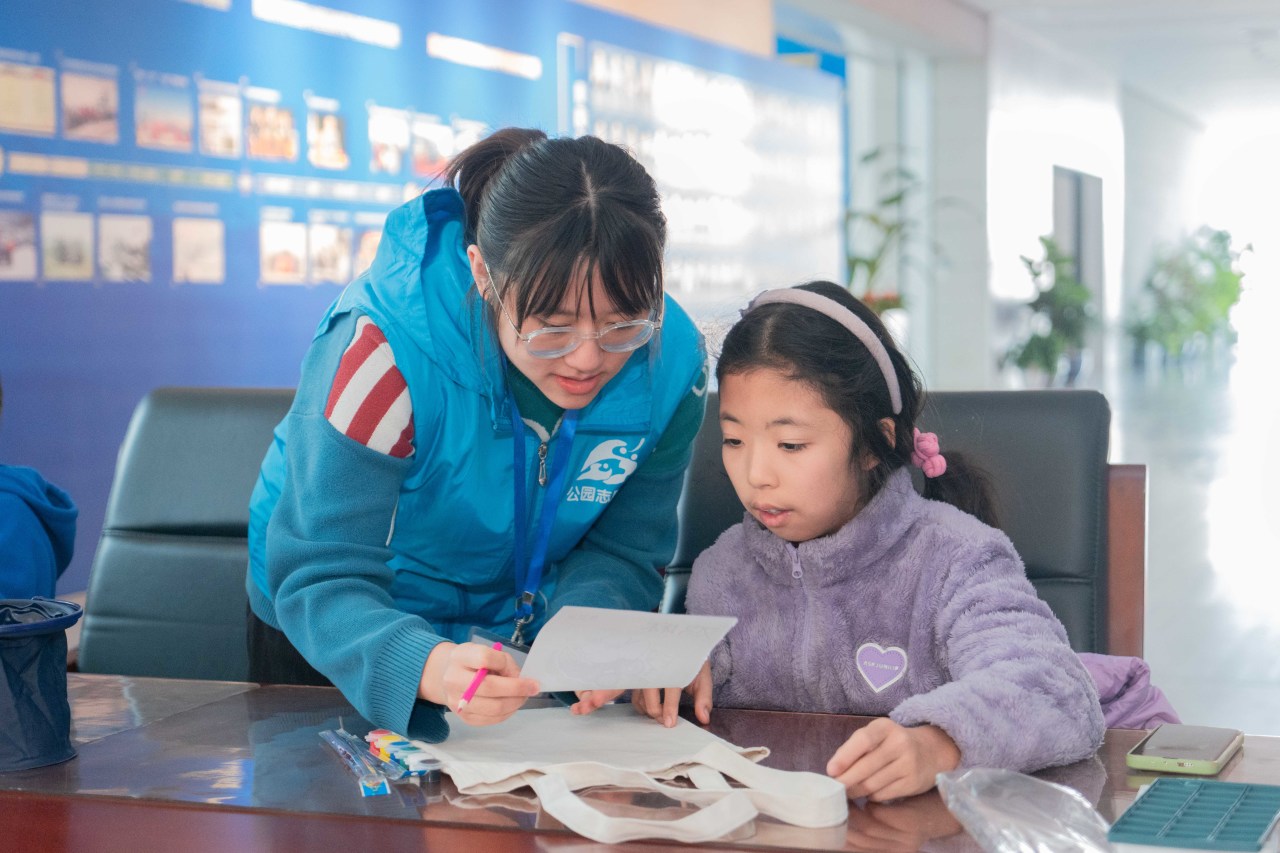 △ “迎新绘园林 共筑生态梦”志愿服务,手绘“生态保护口袋包”,讲解自然生态故事。