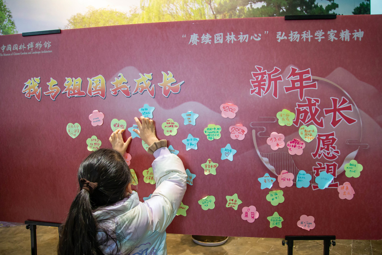 培优青少年弘扬科学家精神,园林小讲师以弘扬科学家精神为载体,聚焦馆内展览展陈,通过沉浸式宣讲、打卡新年成长愿望、趣味问答等方式,为公众讲述园林中的科学家故事,感悟科学家精神。