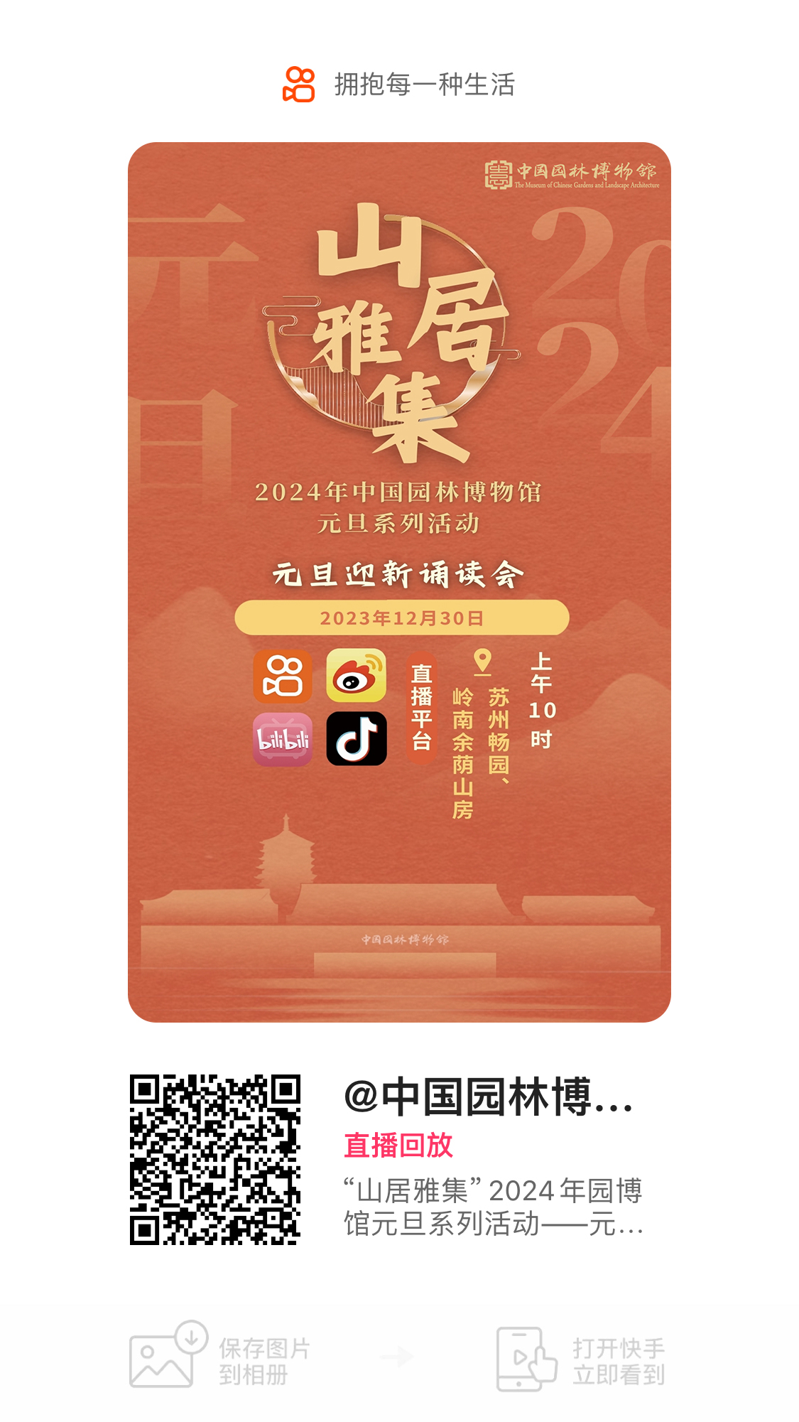 元旦期间,精彩不间断,中国园林博物馆以风雅的园居,精彩的展览,生动的导赏……在线上线下,与观众一起品赏冬日园林,共度元旦美好时光。