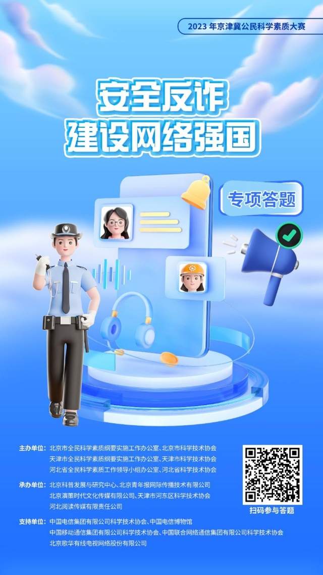 面对猖獗的电信网络诈骗行为,国家有关部门一直在进行重拳打击,并出台了《中华人民共和国反电信网络诈骗法》《中华人民共和国个人信息保护法》等相关法律法规,公安机关等也在全社会推广宣传反电信网络诈骗的知识和理念。为了有效提升人们的反诈意识,增进对电信网络诈骗的了解,提高识骗防骗技能,2023年京津冀公民科学素质大赛推出“安全反诈 建设网络强国”专项答题活动。