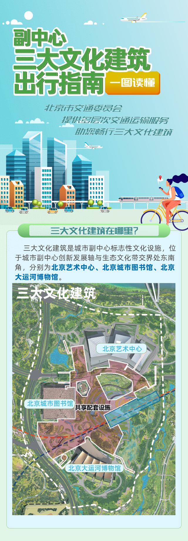通过优化运营服务,加强地铁与公交换乘的便利性,市民可更方便地到达三大文化建筑。目前,地铁1号线-八通线、6号线以及市郊铁路副中心线,均有站点可换乘公交抵达三大文化建筑。