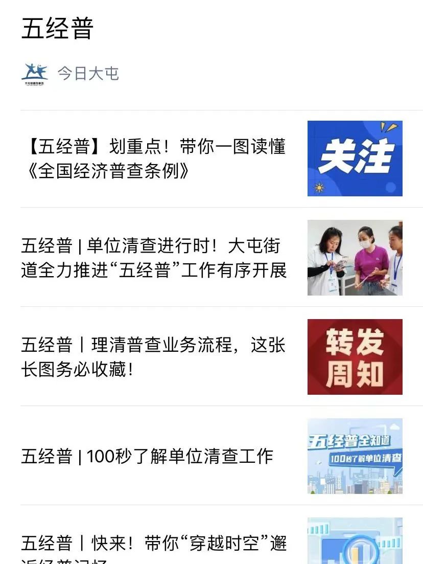 街道结合辖区商务楼宇、高档社区多的特点,在人流密集区域张贴宣传海报,开展多形式宣传活动,增强“五经普”社会知晓度和群众配合度。同时,突出新媒体平台重点,在“今日大屯”公众号增设“五经普专栏”,实时发布工作动态及科普知识;依托社区微信群、电子屏等载体搭建宣传平台,打通“五经普”宣传动员“最后一公里”。