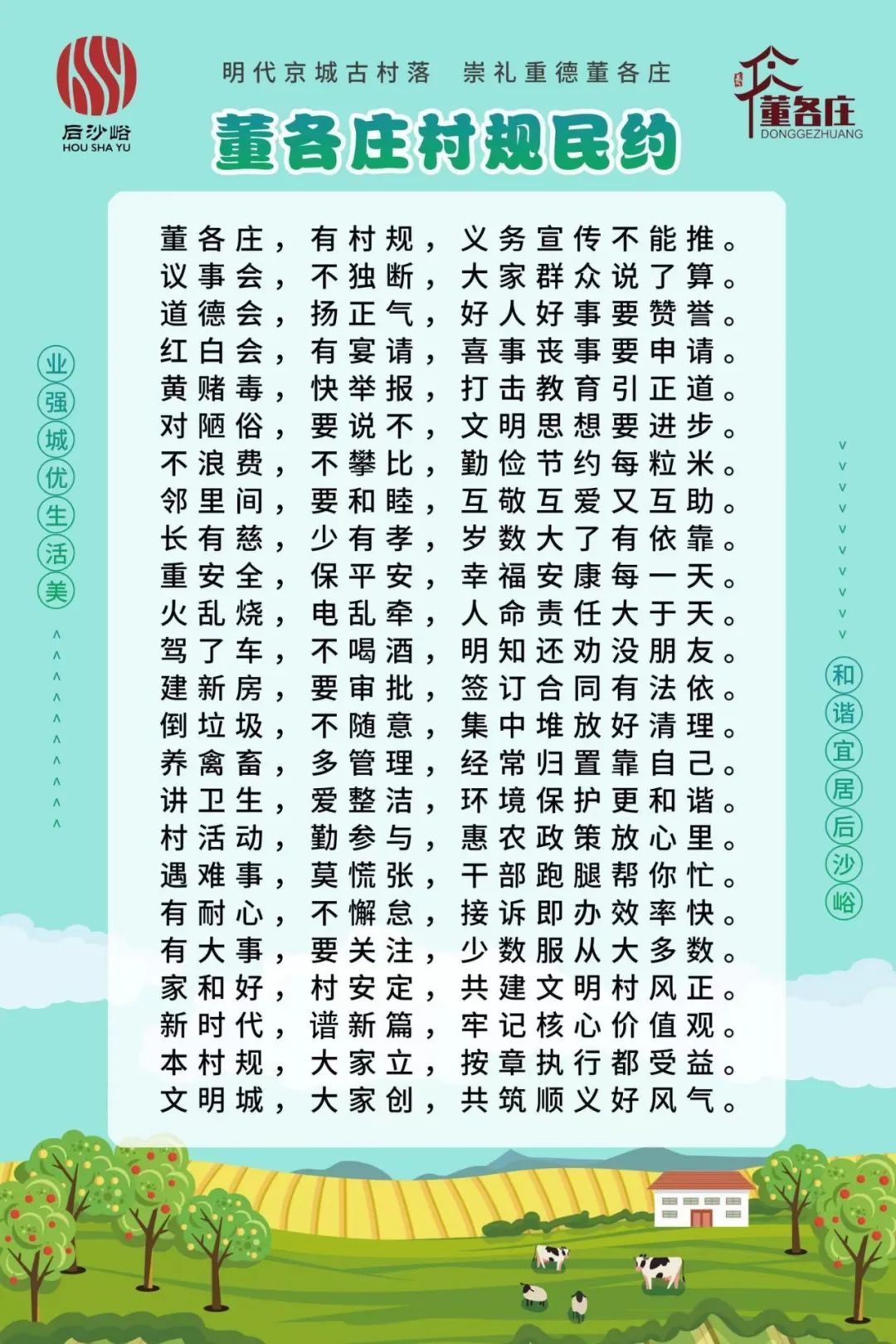 后沙峪镇董各庄村巧用村规民约,在基层治理中寻求最大“同心圆”,绘就一幅共建共治共享的和美乡村新画卷。