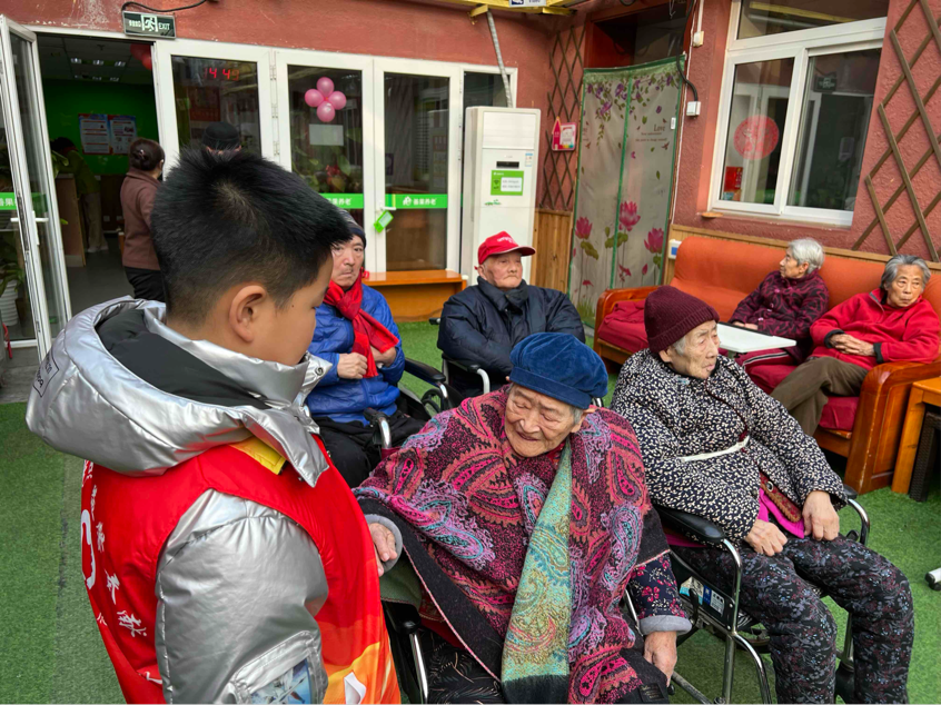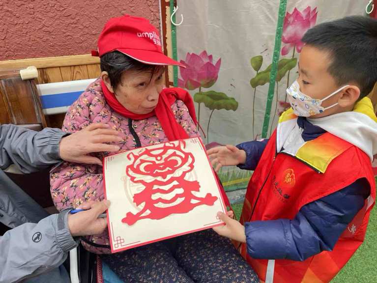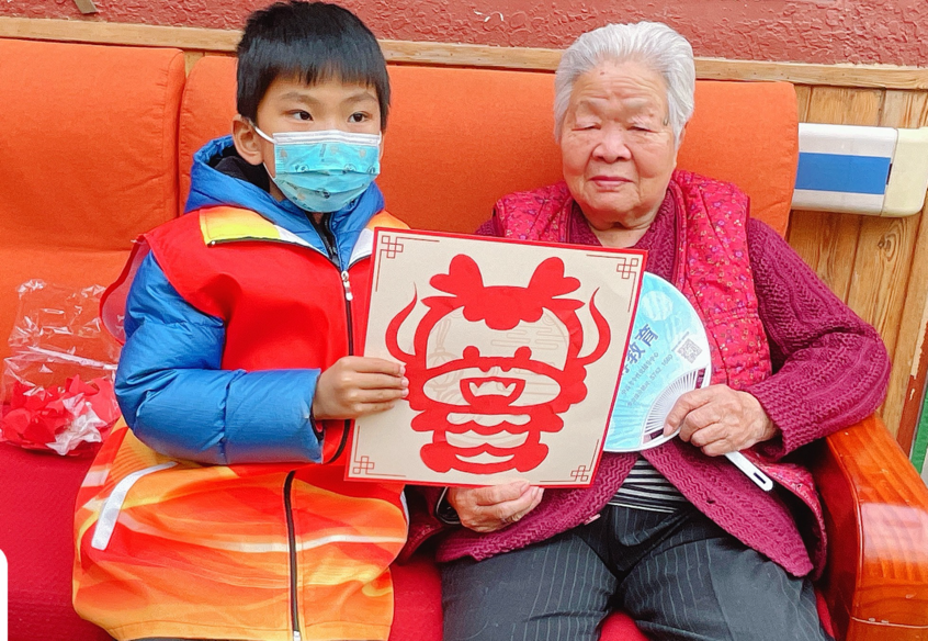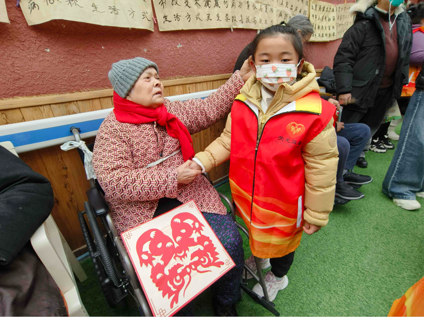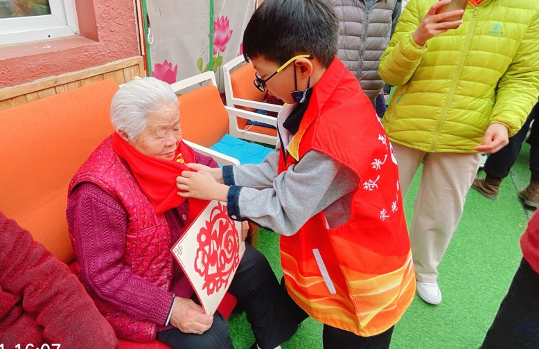 小志愿者将精心挑选的红色围巾和剪好的窗花一并送给了老人,老人露出了灿烂的笑容,还有人暗自擦拭眼角的眼泪。在这个节日里,小志愿者们的陪伴,带来了喜悦和欢乐。
