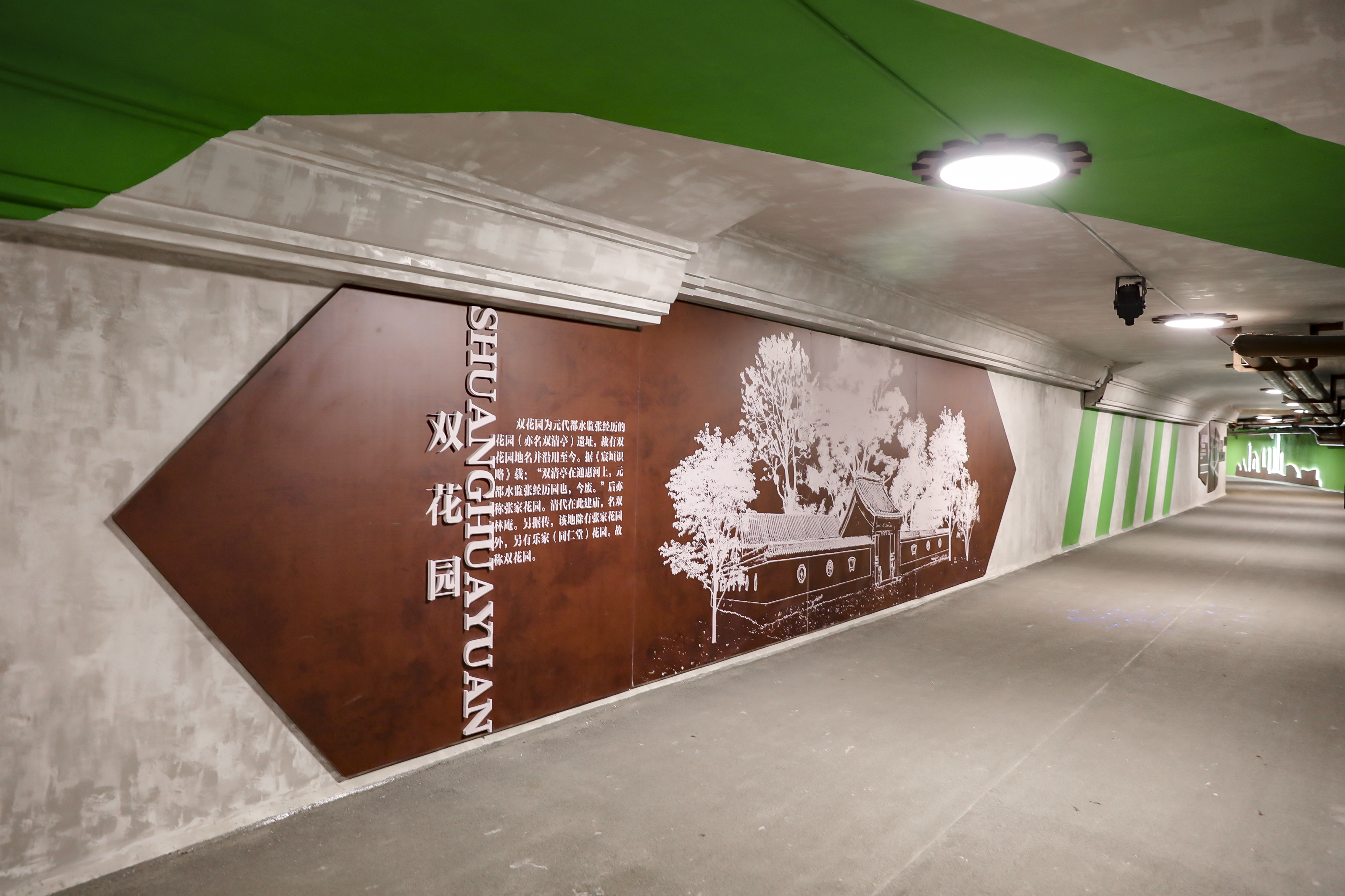 在恢复、重塑通廊通行功能的基础上,街道在建设中融入地区文化底蕴和“花园城市”理念,体现辖区漕运文化、铁路运输、工业记忆、地名由来以及数智双井建设成果,以特色空间回应群众对安全出行和慢行品质的诉求,提升居民在双井生活、出行的幸福感和安全感。