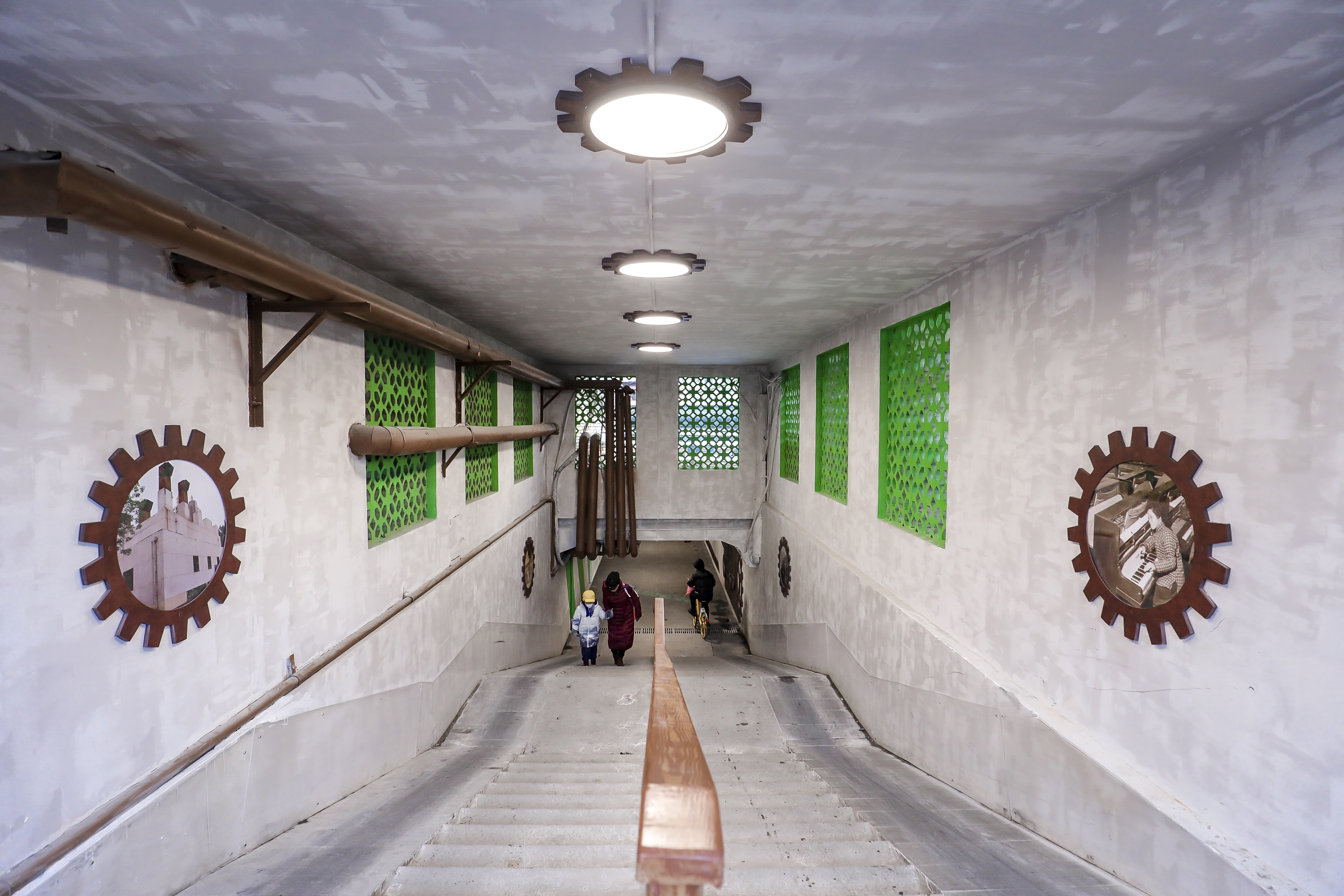 井色拾光花园通廊北接CBD-通惠河-庆丰公园,是许多居民通往庆丰公园、通惠河、CBD区域的必经之路,多年来存在地面坑洼、照明昏暗、墙面破损严重、漏雨积水、排水困难等问题,居民出行不畅。街道在通廊中加固通道内沉降缝、升级防水处理、安装灵敏的水位“报警员”,同时拓宽通廊内两侧坡道,增设了扶手,让不同群体出行更加安心。