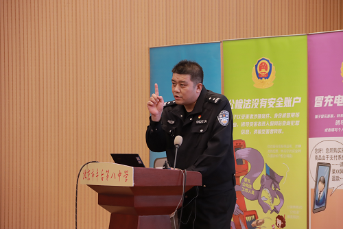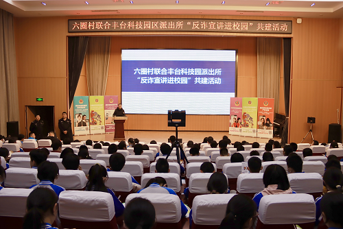 为加强未成年人安全防范工作,提高学生防范意识和能力,1月5日下午,看丹街道六圈村新时代文明实践站联合丰台科技园派出所共同来到丰台第八中学,开展了一次反诈主题的宣传教育活动。
