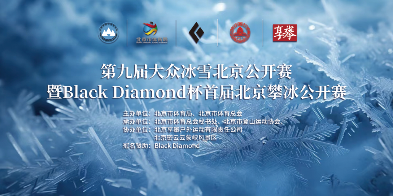 大众冰雪北京公开赛是北京市冰雪项目的品牌赛事,已经成功举办了八届,今年首次加入了攀冰项目。本次比赛由北京市体育局、北京市体育总会主办;北京市体育总会秘书处、北京市登山运动协会承办;北京享攀户外运动有限公司、密云云蒙峡风景区协办;Black Diamond 黑钻冠名赞助;ISPO Beijing 给予了大力支持。