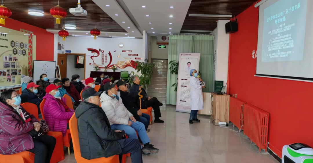 今天正好赶上每月定期义诊活动。冬季寒冷干燥,是各种常见病、慢性病的高发季节,为了让老年人了解更多的心血管、心脑系统等慢性病防治知识,提高中医药健康文化素养,增强防病治病意识,街道老联体服务商特意将专业医护人员请到驿站,为老人们讲解健康知识、提供义诊服务。“基本上每月都开展一次,在家门口就能免费体检,特别好!”王阿姨跳完健身操,又来到义诊专区测血糖、听讲座。