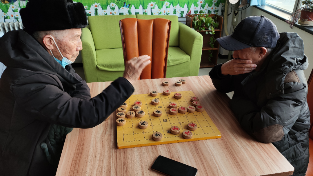 中午回家小憩一会儿,王阿姨又赶往驿站了,原来,每日下午2点,二层活动室会有文娱活动,下象棋、打扑克...大家围坐一起,好不热闹。棋类运动不仅给老人们搭建了沟通、交流的平台,还有益于老人锻炼记忆力和逻辑思维,达到“大脑保健”的效果,一举两得。