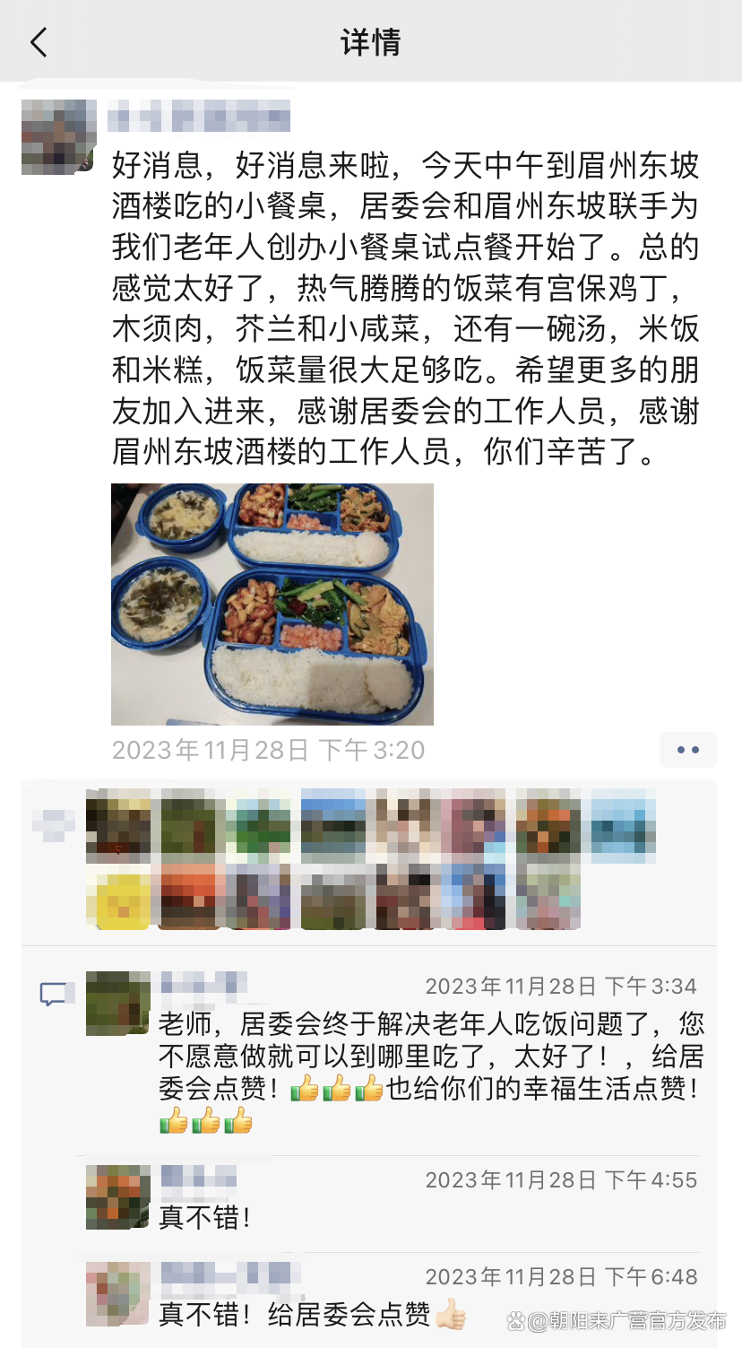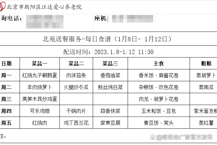 前期,来广营地区各社区通过电话调查、入户走访、召开座谈会等方式对老年人用餐需求进行了详细摸排。在了解到高龄、不便出行的老人较多后,北苑二号院及三号院社区通过党建引领、社区共建,多方链接辖区资源,与江达爱心养老院开展合作,为老人们送餐入户。