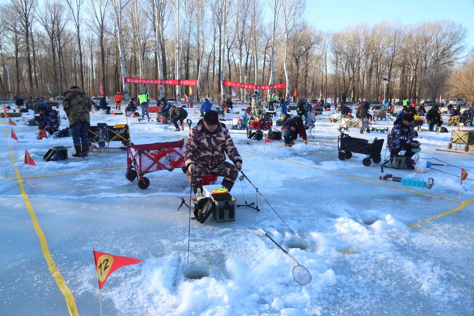 2024年1月14日,第九届大众冰雪北京公开赛-京张冰钓赛在北京市延庆区旧县镇盆窑村清泉垂钓园举行,来自北京市和河北省张家口市的80名垂钓爱好者同场竞技交流。