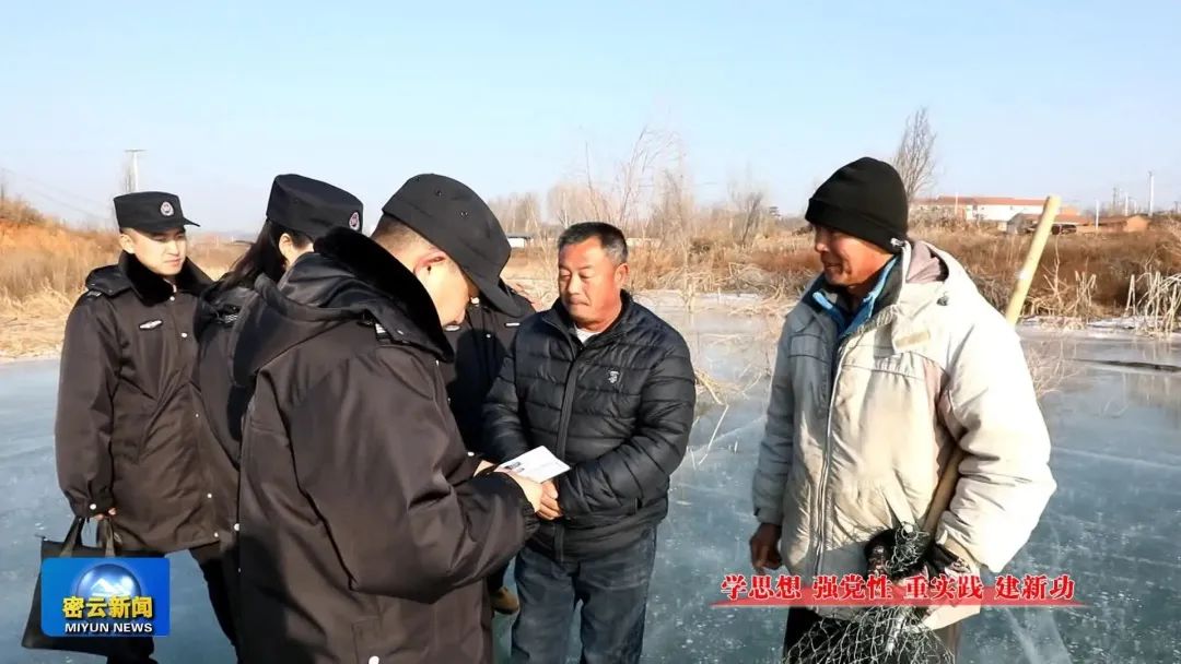在石匣、东关村水库出入卡口,保水网格员沿着水库围网巡视,严格执行库区卡口出入登记,密云水库综合执法大队高岭分队的队员正对渔民冬季捕捞作业进行检查。