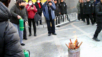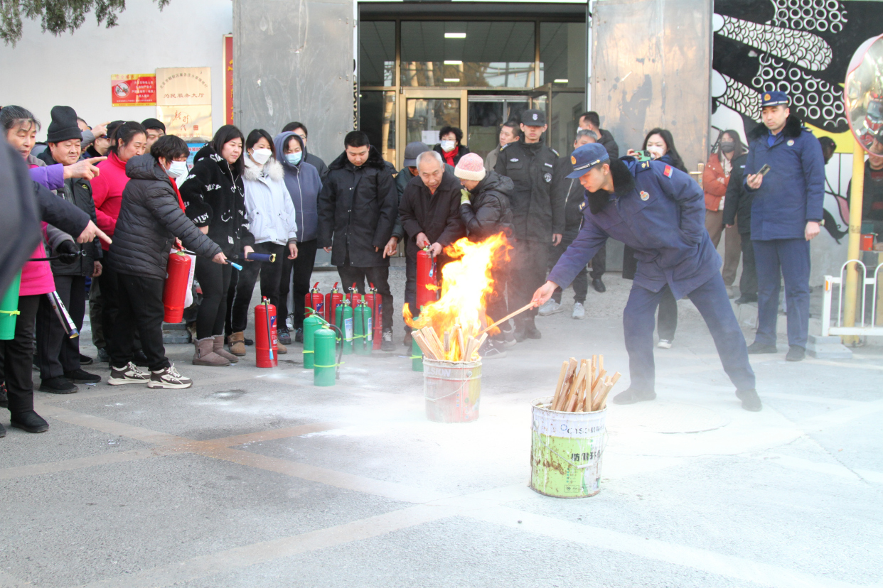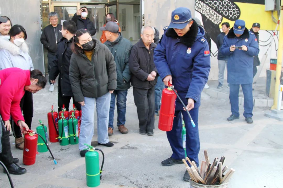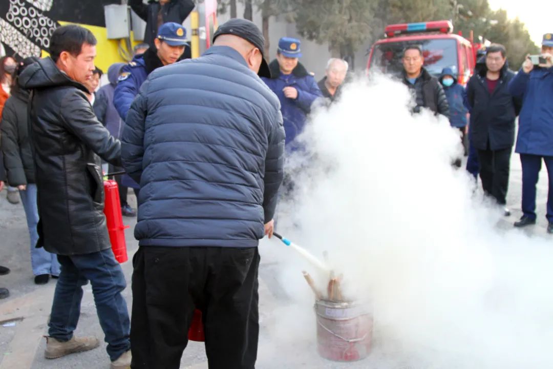 村民们认真观摩,积极参与,通过实际操作,掌握了正确使用灭火器进行灭火的技巧。