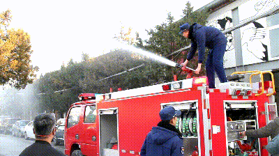 消防员们还现场演示了使用村内配备的消防车进行火灾扑灭,演练中,消防车高高地抬起喷水枪,准确地对准火源,瞬间将燃烧的火焰扑灭。