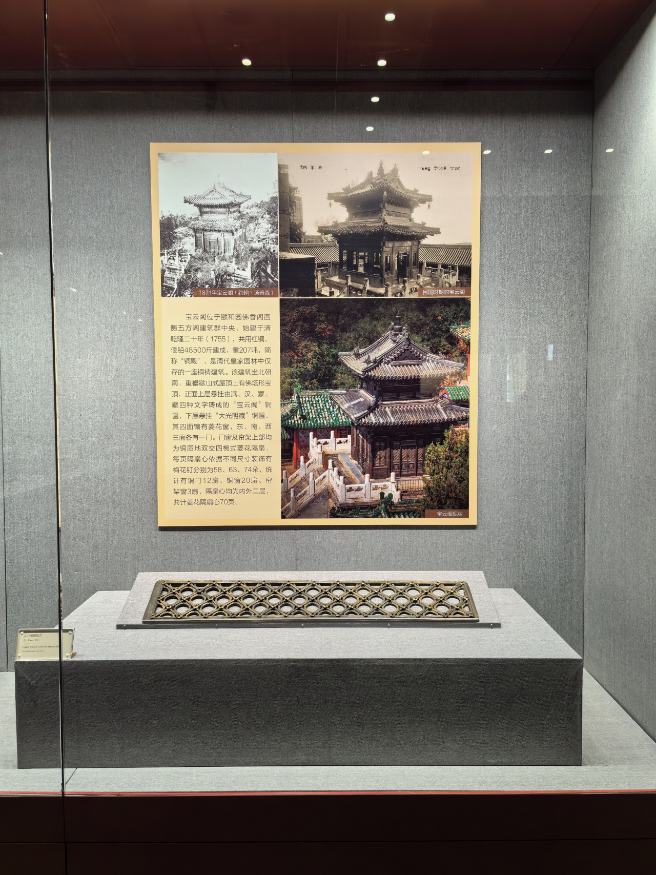 2024年1月10日,经国家文物局划拨,由三位爱心人士捐赠的1页曾经流失海外的宝云阁铜窗芯正式入藏颐和园。