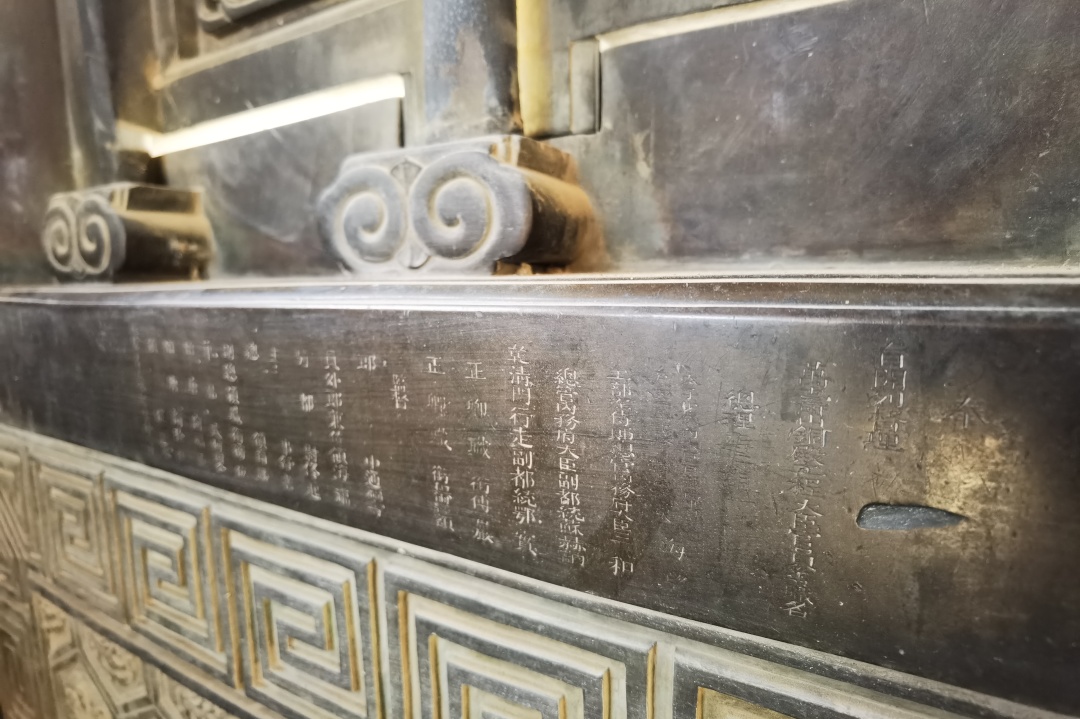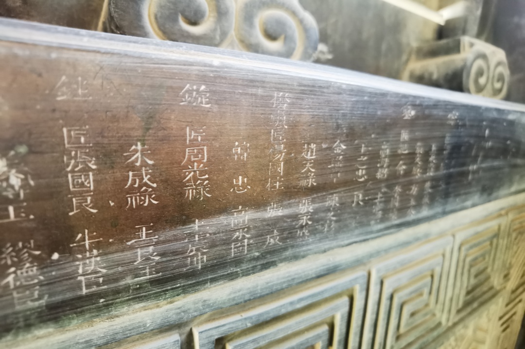 据清宫档案记载,乾隆二十年(1755)始建宝云阁铜殿,共用了红铜、倭铅485 000斤。殿内坎墙壁上镌刻了当时监工大臣和所有工匠的名字,有铸匠、凿匠、锉匠、拨蜡匠、镟匠、木匠等,纪年乾隆二十年(1755),是非常珍贵的史料。该铜殿是中国目前尚存工艺中最精巧、体量巨大的青铜铸品之一,其绝妙的铸造工艺,在中国悠久的青铜历史文化中占据重要地位。