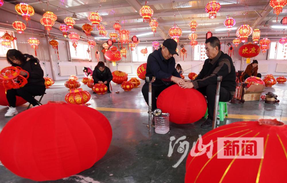 龙年春节将至,在张家口市怀安县灯笼制作专业村左卫镇北高家营村,农民们忙碌着加工、组装、销售各种红灯笼,满足春节市场,红红火火迎新春。(河山新闻记者 梁涛 通讯员 高景山)
