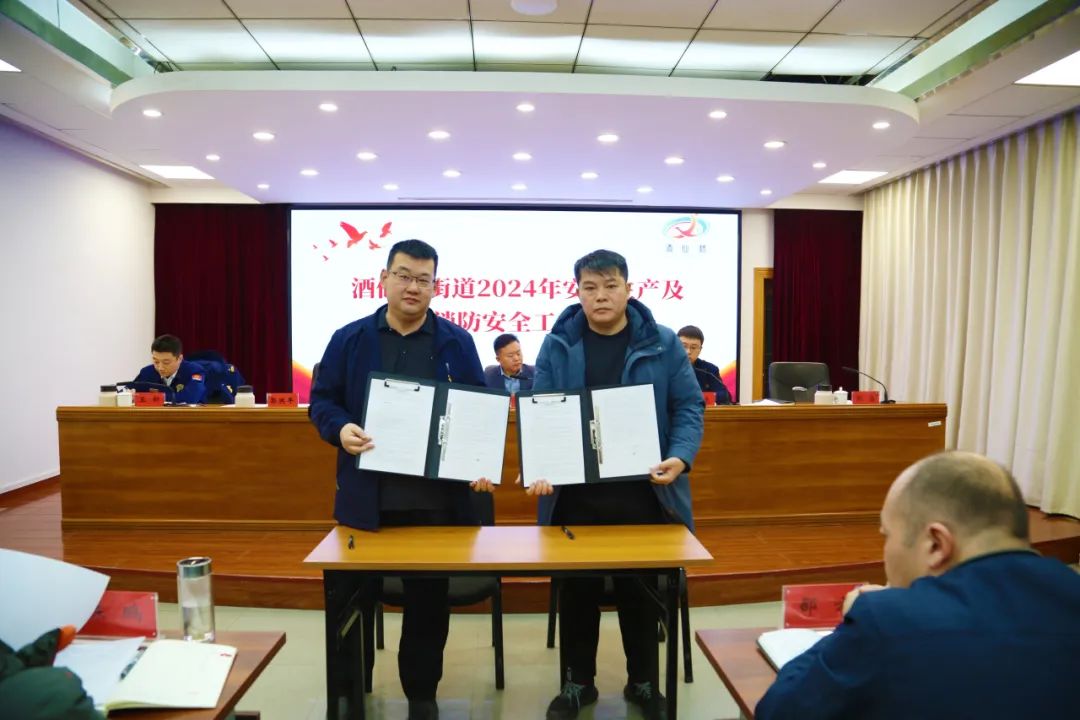 会上,郭洪平分别与企业代表北京兆维创新科技服务有限责任公司副总经理孙国勇、社区代表大山子社区党委书记兼主任刘伟新签订《2024年安全稳定工作责任书》,其他企业社区将于会后逐一签订,进一步压实了安全主体责任。