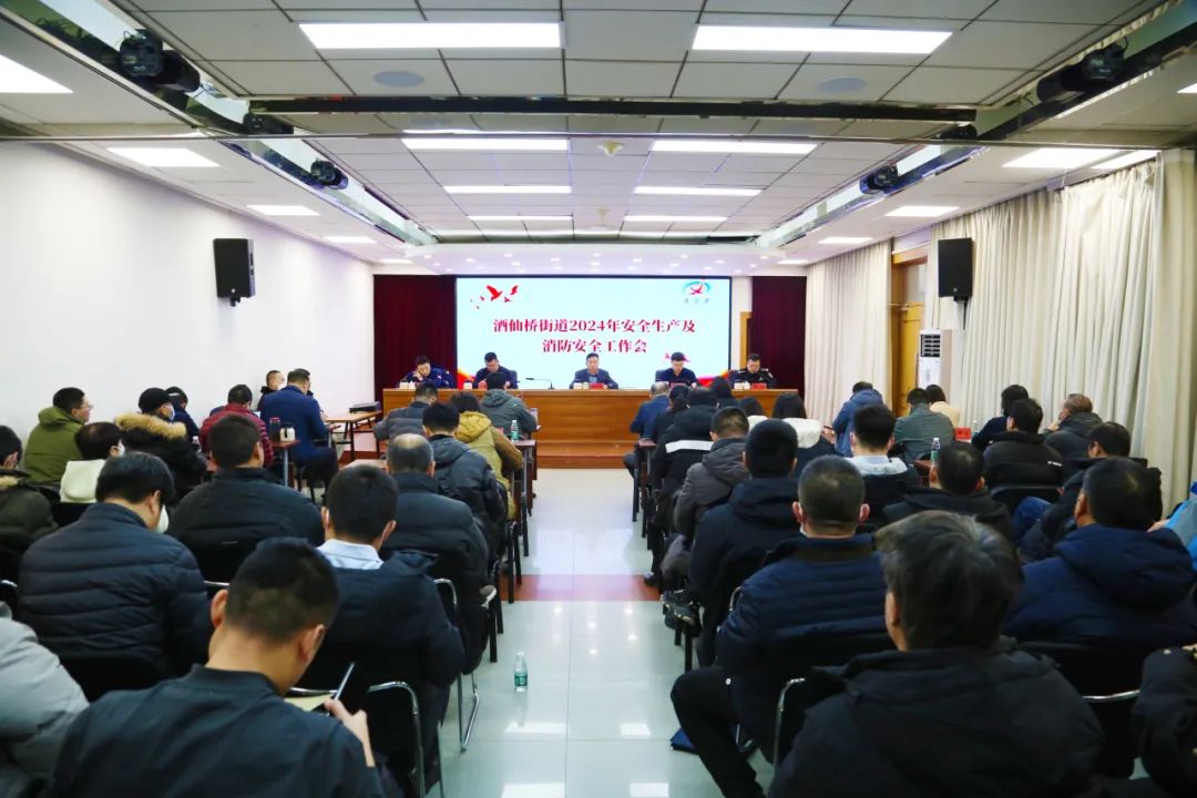 办事处副主任郭洪平部署了《2024年酒仙桥街道安全生产及消防安全工作方案》。派出所所长张鑫部署了地区治安相关工作,消防救援支队青年路大队消防监督员王轩通报部署地区火灾形势和防控相关工作。
