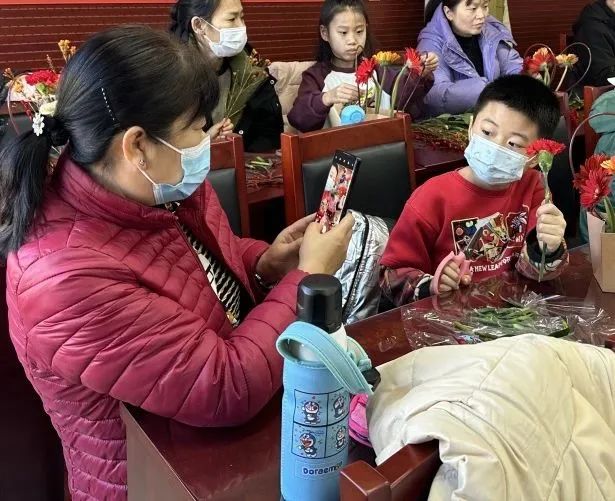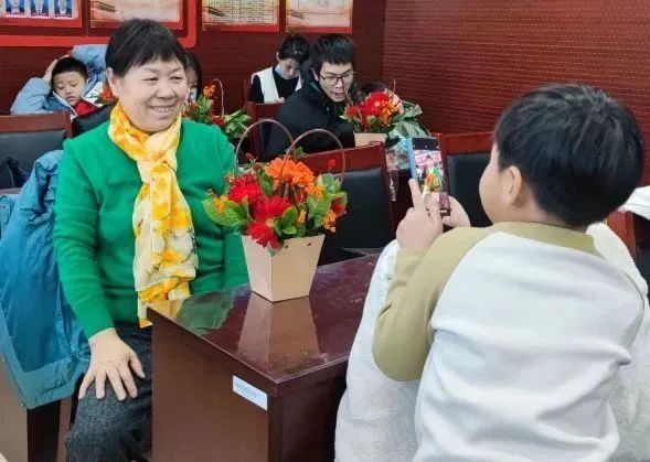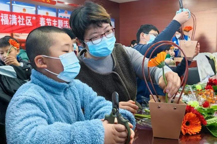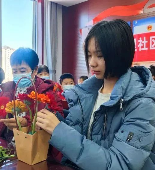大家捧着自己亲手制作的作品,反复欣赏和拍照,一个个脸上洋溢着幸福感和成就感,居民的笑容就像手中的花儿一样灿烂,犹如冬日里的一束暖光。“这是我第一次尝试插花,还和老师学到了花艺小技巧,回家我要把它送给爷爷。”参与活动的小朋友说道。