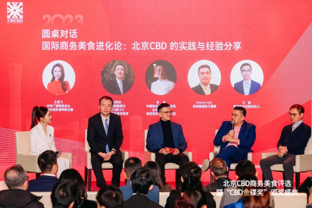 盛典现场,在“国际商务美食进化论—北京CBD的实践与经验分享”圆桌对话环节,各行业代表围绕国际商务美食发展趋势、北京CBD独特实践以及成功经验展开了深入探讨。