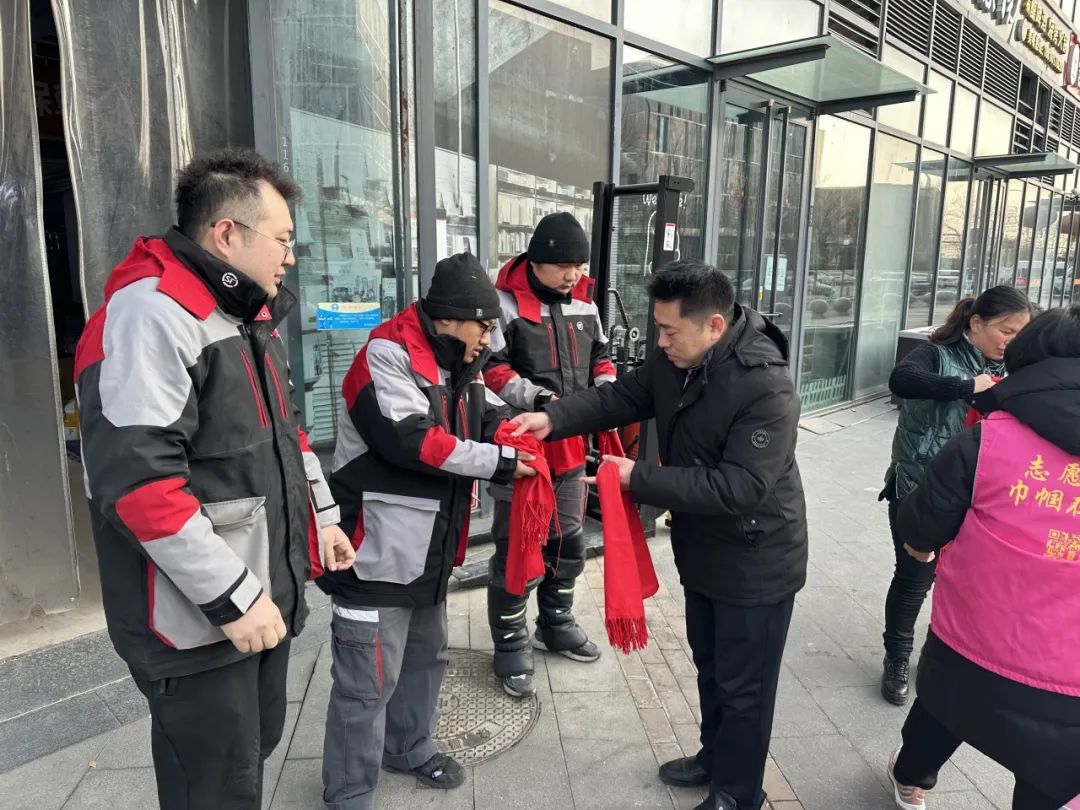 一行向坚守一线的快递、外卖小哥,为大家送去70余箱新春礼物。并亲切询问节日安排,同时对他们在融入社区基层治理和为辖区居民服务中的贡献表示感谢。