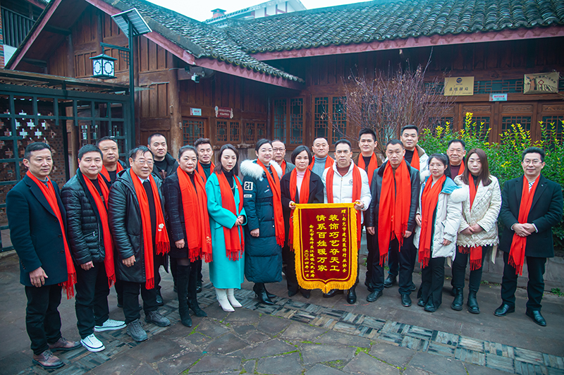 2月1日上午,在四川省南充市高坪区江陵镇元宝山村村委会,江陵镇政府主要负责人把一面写着“情系群众办实事 爱心帮扶暖民心”的锦旗送到南充市建筑装饰行业协会会长辛仲武的手中。