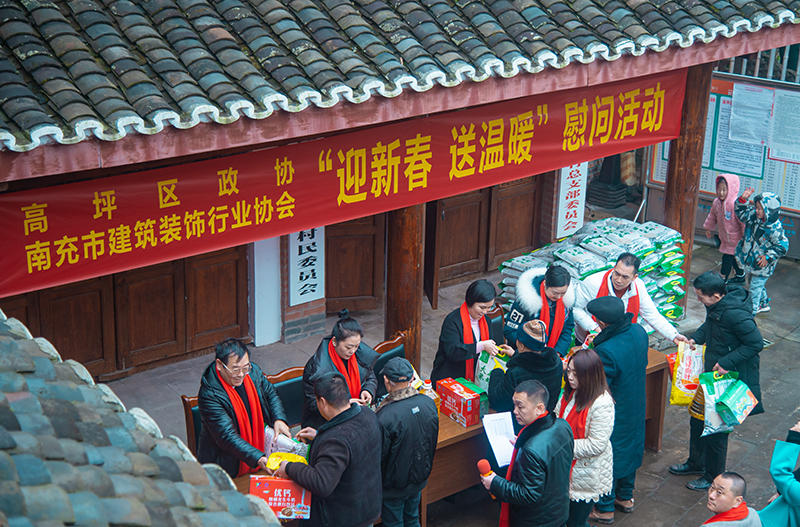 当天,高坪区政协联合民建南充市直属四支部开展“迎新春•送温暖”慰问活动,来自高坪区政协社法委的部分委员、南充市建筑装饰行业协会的爱心企业开展“双助”(助力脱贫攻坚、助力乡村振兴)活动,将价值7万余元的爱心物资一一分发给元宝山村部分贫困村民,帮助他们温暖过节。