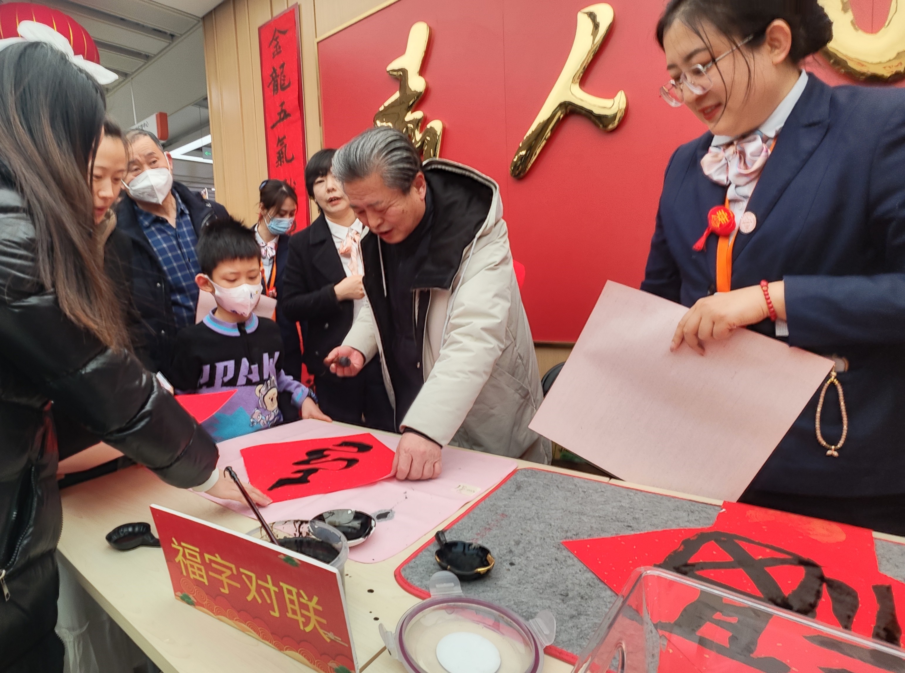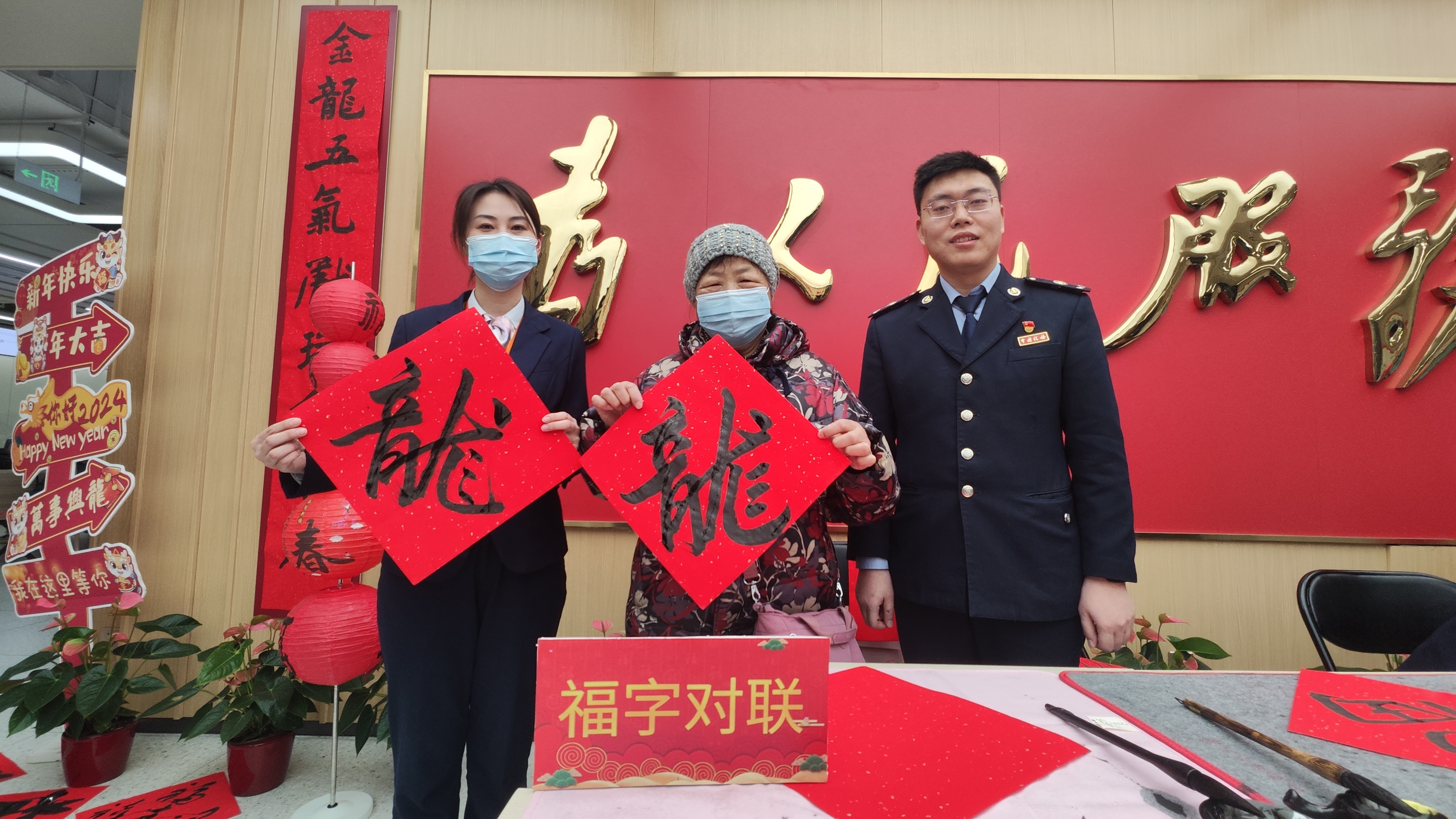 “祝您新春快乐,龙年大吉!”、“给您拜年啦!祝您身体健康、万事如意!”......工作人员将一张张福字送到群众手中,同时献上诚挚的新春祝福,不仅表达了丰台区政务服务中心对办事群众的关心与祝福,也为即将到来的新春佳节营造欢乐祥和的喜庆氛围。