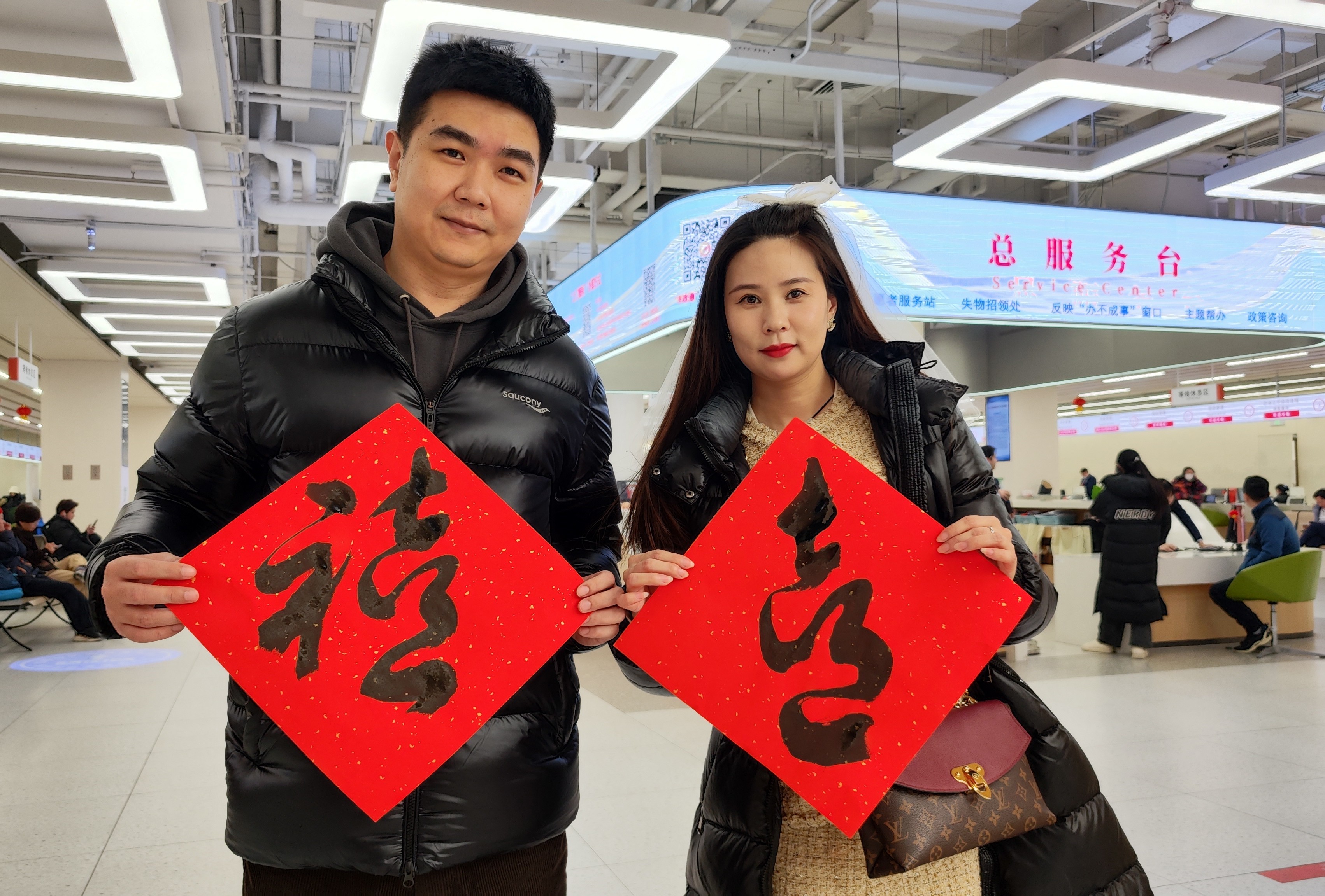 “群众不仅可以收到由工作人员亲自书写的福字,还可以在现场体验自己写福字和写对联。”参与书写的综合受理专区窗口工作人员徐佳向记者介绍,“春节家家户户都有贴春联的习俗,能用传播传统文化的方式为老百姓送上实实在在的新年祝福,我们都觉得很有意义。”