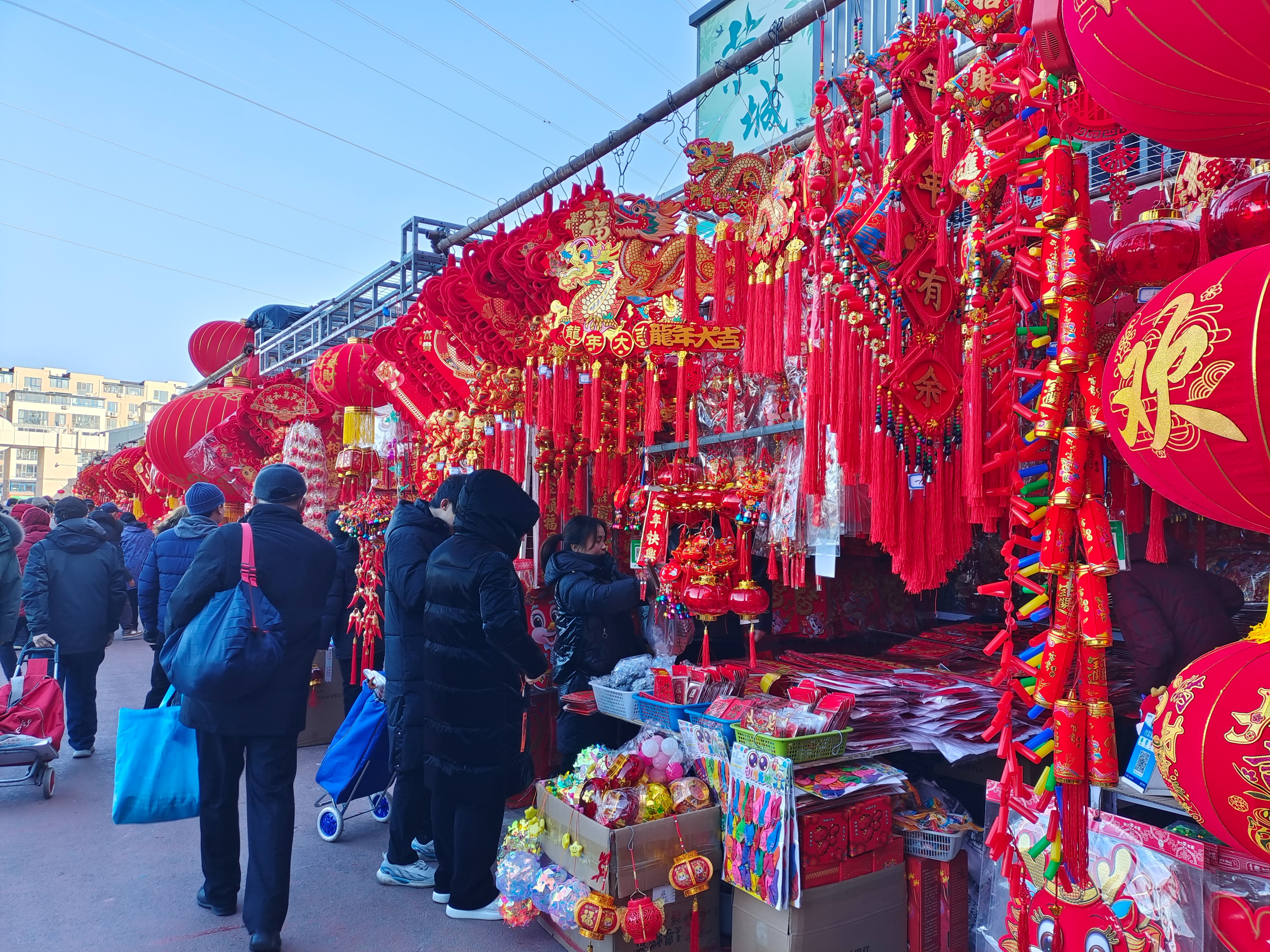 “快过年了,带着家人一起过来逛逛,感受一下现场的烟火气和年味儿,刚刚买了福字、春联还有灯笼,价格挺实惠的,种类也很全。”市民张女士一边挑着年货一边说道,自己每到过年都会置办一些新年饰品来装扮家里,给自己一个开启新年的仪式感,今年特别挑选了小龙造型的玩偶和饰品,希望新的一年可以红红火火。