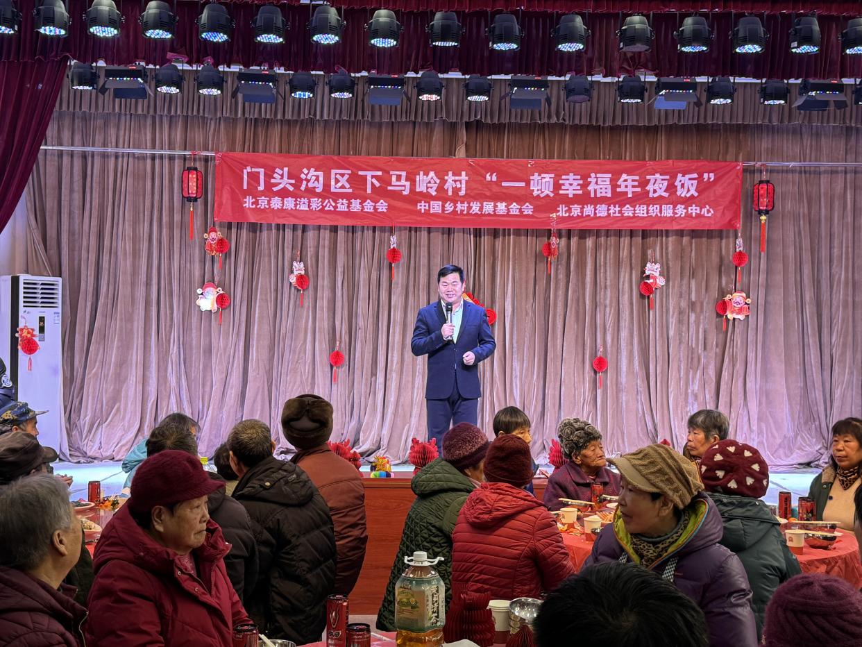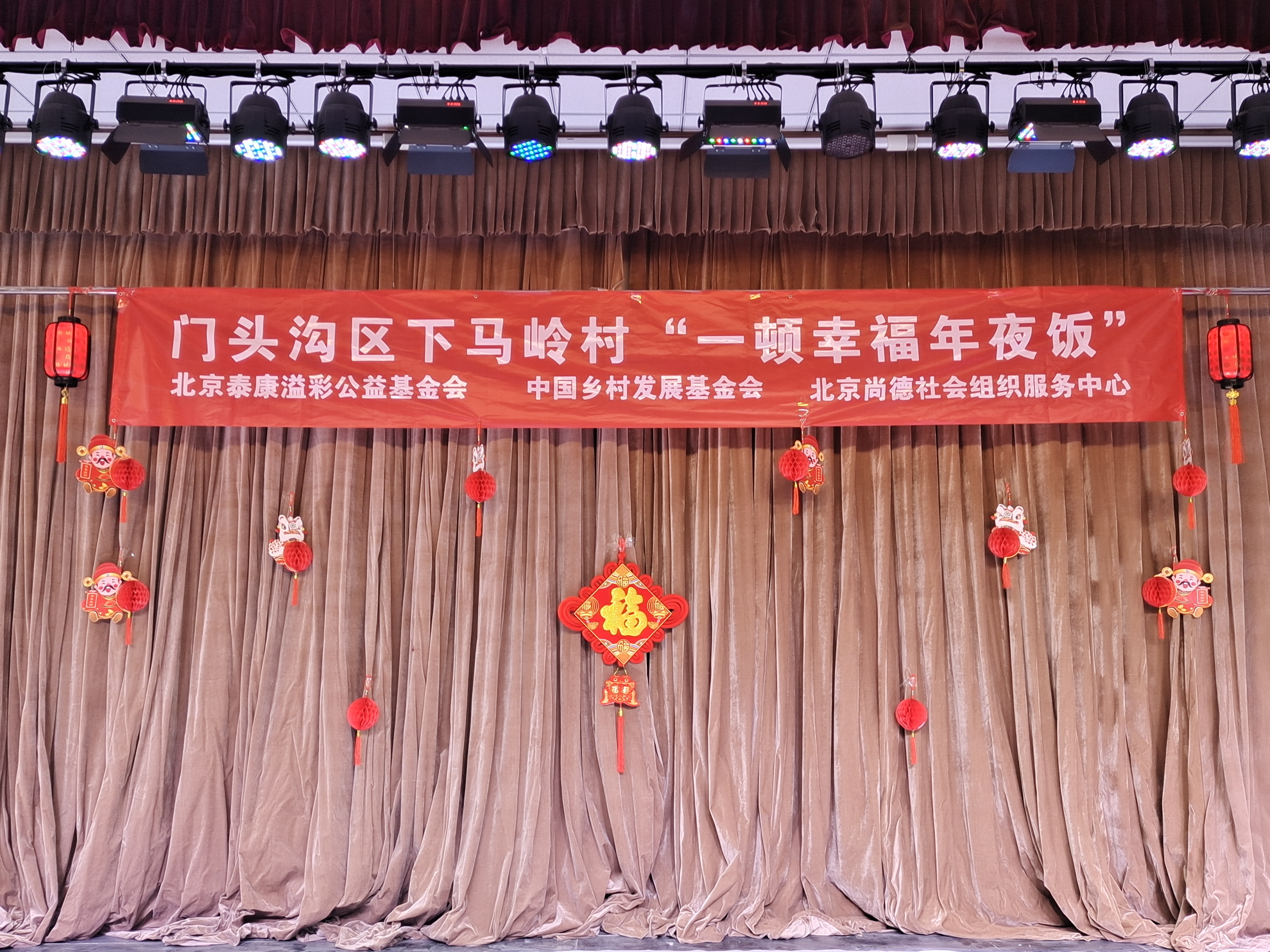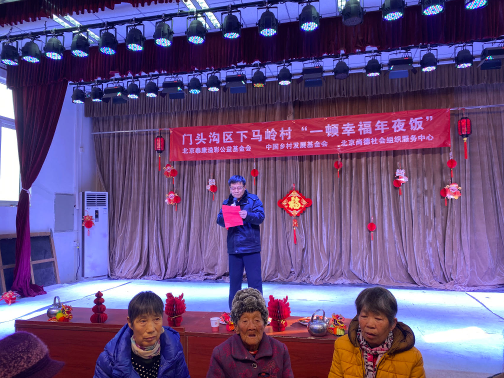 爆竹声声春讯早,桃符处处岁时新。在这辞旧岁,迎新春的美好时刻,为了弘扬中华民族传统文化,关注老年人群,传递社会爱心,让村里的老年人感受到社会各界的关爱,度过一个温馨、快乐的春节,北京泰康溢彩公益基金会与中国乡村发展基金会携手北京尚德社会组织服务发展中心,于近日在门头沟区雁翅镇下马岭村举办了一场别具意义的爱心年夜饭活动。“幸福年夜饭”活动由泰康溢彩公益基金会HWP俱乐部专项基金、泰康之家专项基金支持。